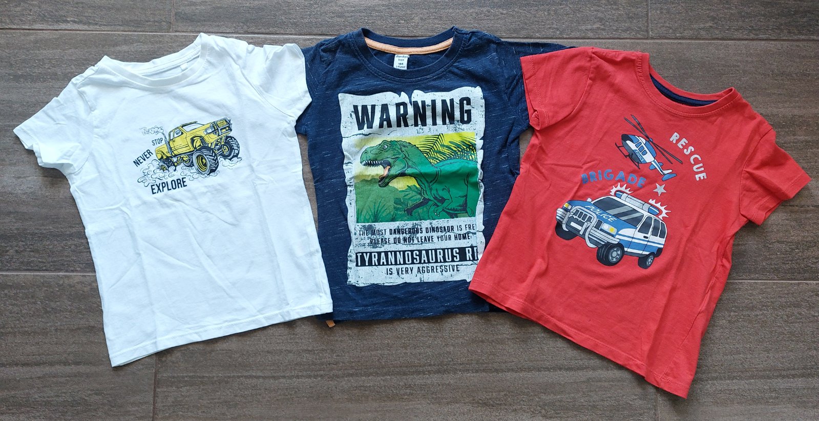 Predam tricka, modre s Dinom Dopodopo, cervene Kik, biele Sinsay, cena spolu