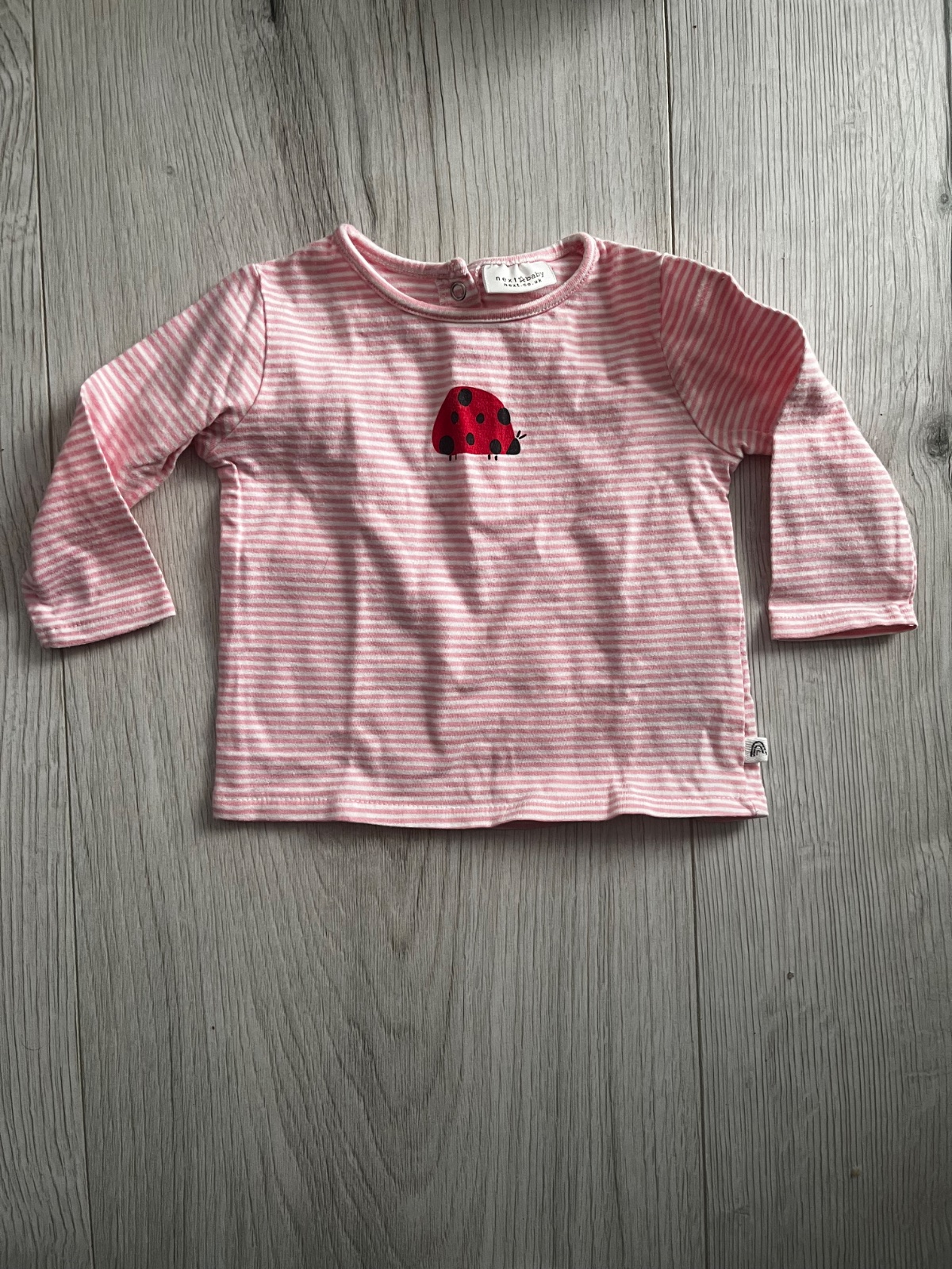 Predám vo výbornom stave dlhorukavovy ružovo-biely pásikavý top s obrázkom lienky značky Next, veľkosť: 68 (3-6 mesiacov).