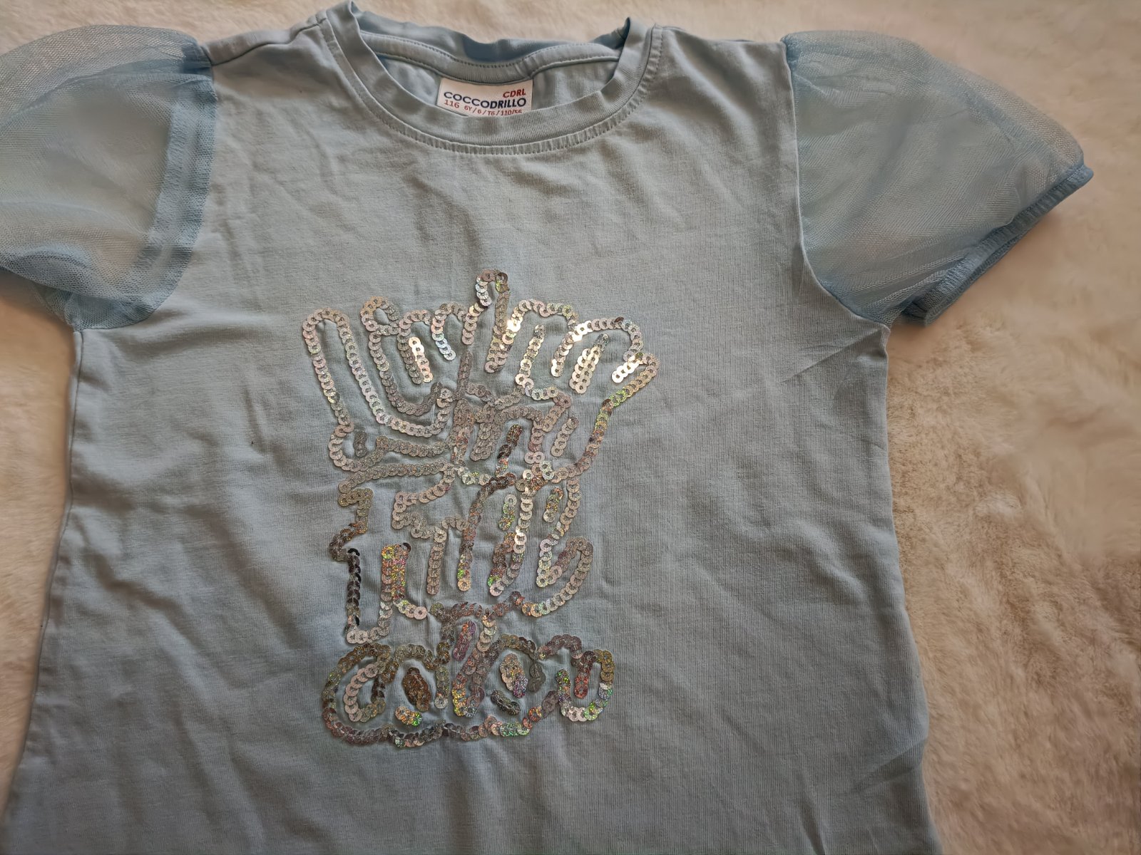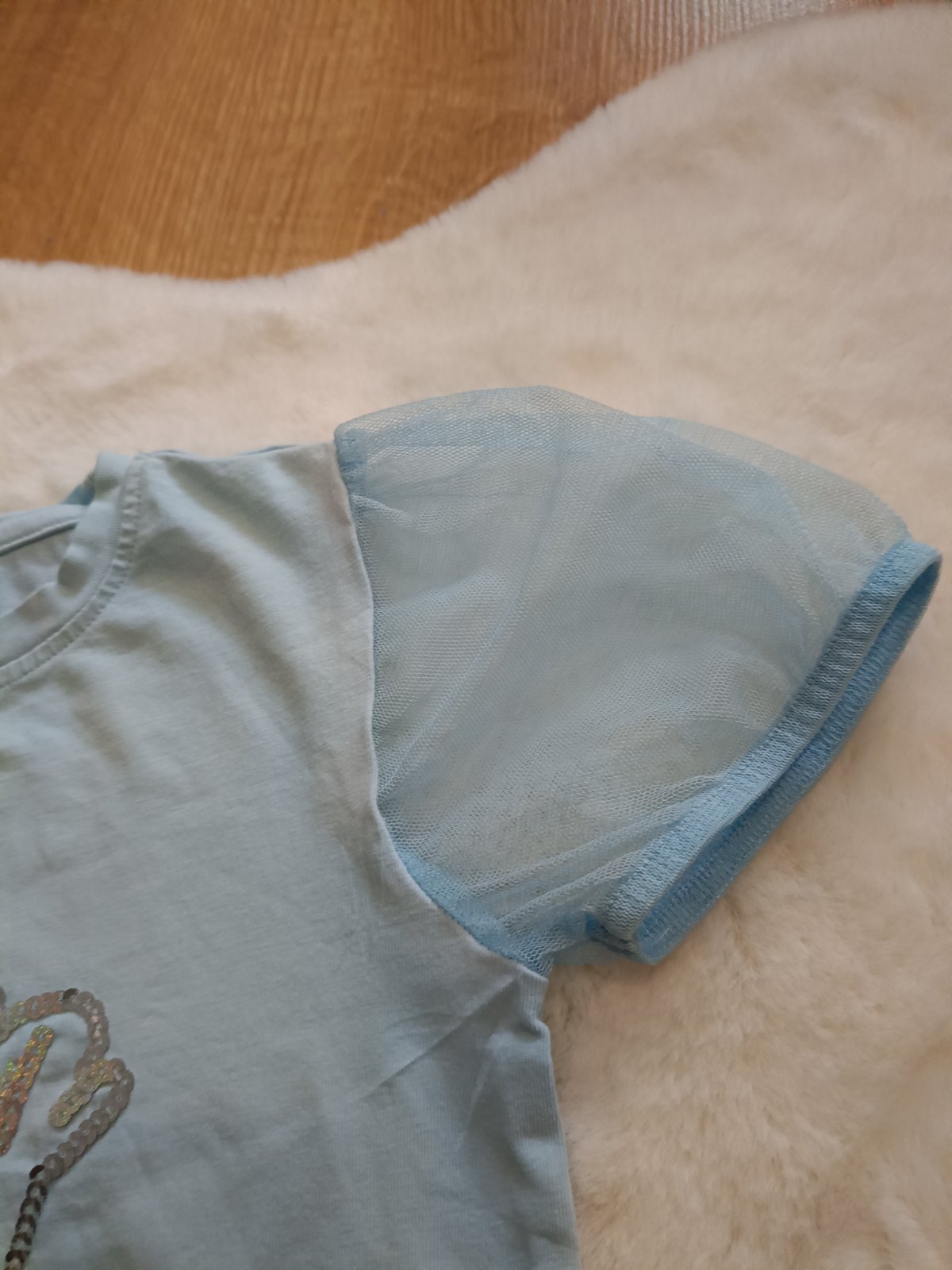 Krásne tričko bavlnené s aplikáciou flitrovanou a tylové nadýchané rukávy
