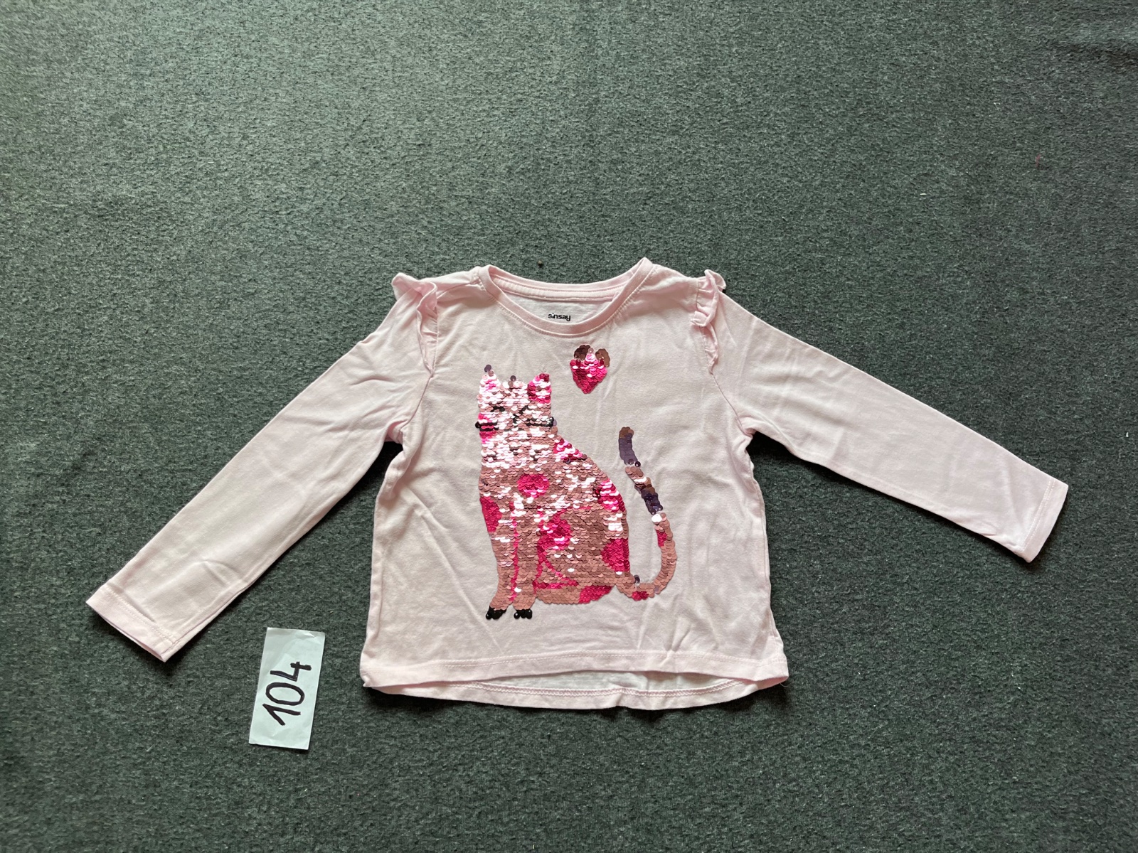 Minimálne nosene tričko s premieňacou mačičkou. Bez poškodení. Veľkosť 104