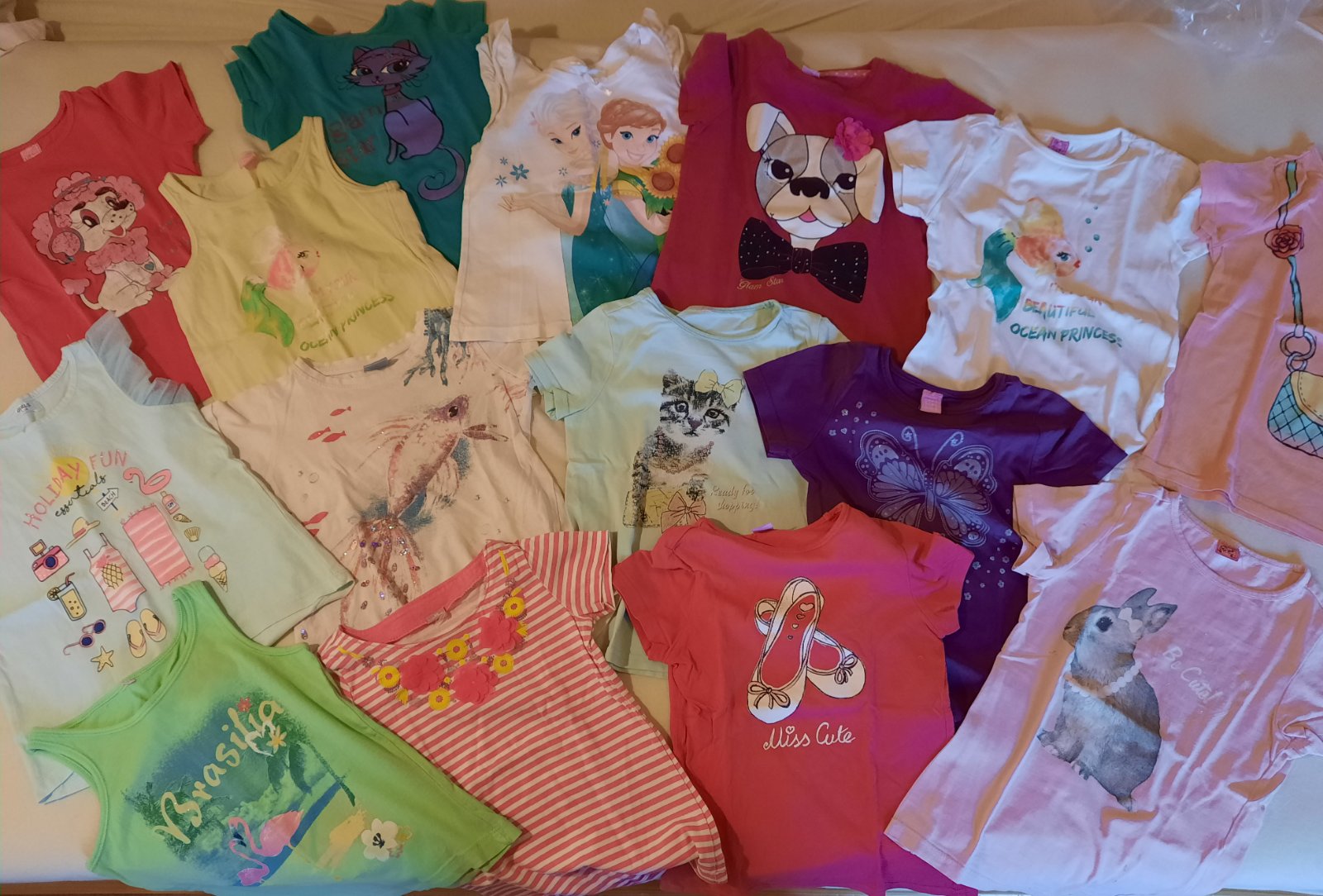 Nosené letné tričká a tielka, zachovalé , bez dier, občas sa fliačik nájde, spolu 15 ks . Možnosť výberu tričiek, cena potom dohodou