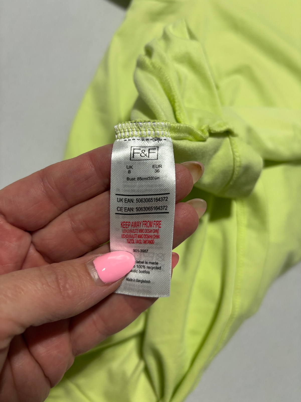 Bavlna, nemá poškodenia, príjemný materiál na leto Je to M- ko velkosť,takže 38-40 velkosť ponosí.