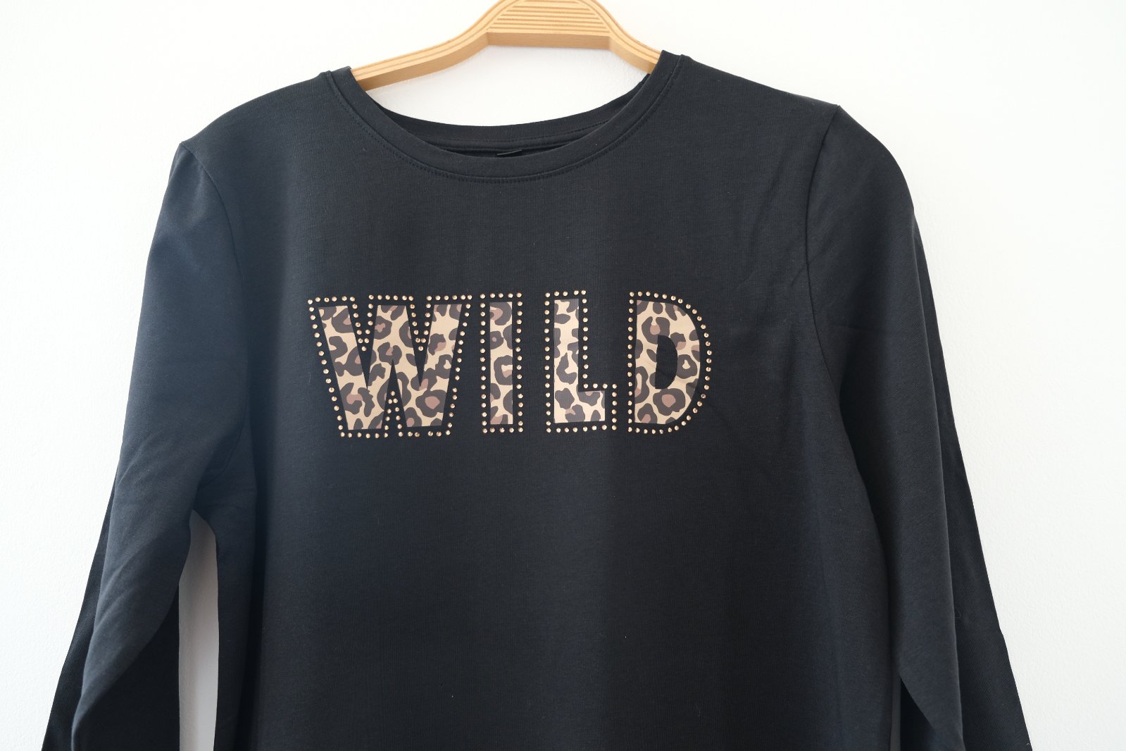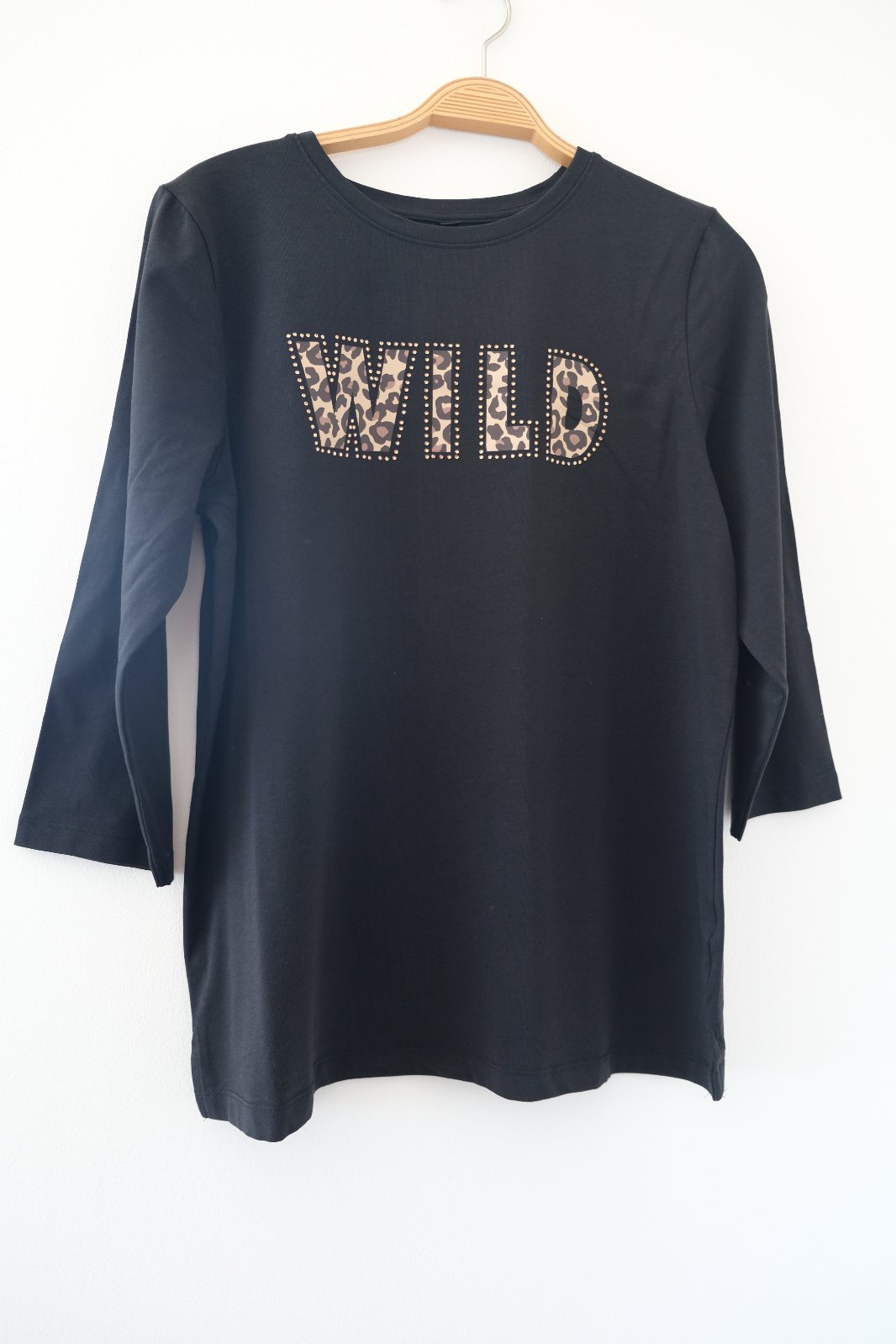 🛒 Tričko čierne nápis WILD s 3/4 rukávom, rozparok na boku