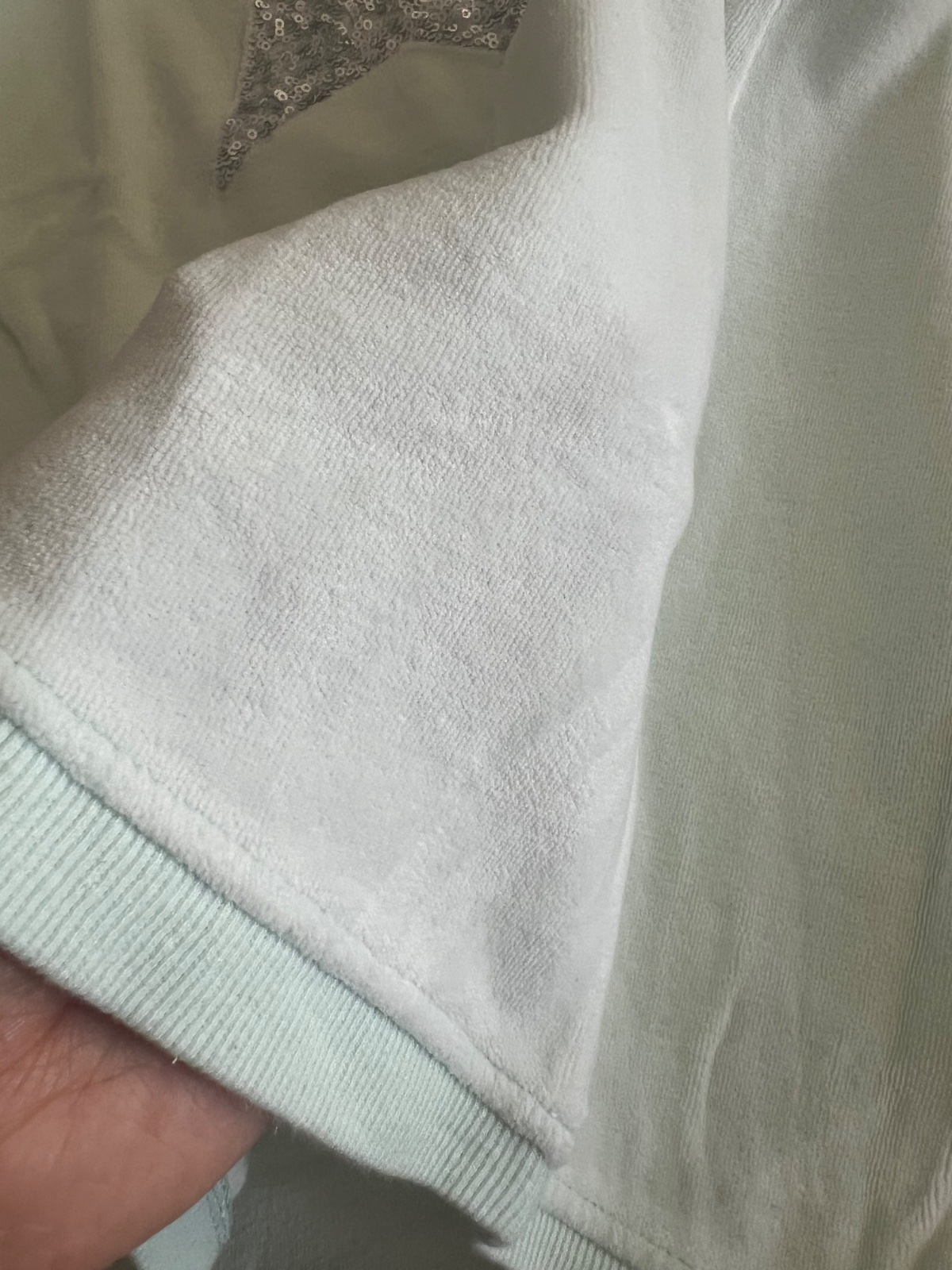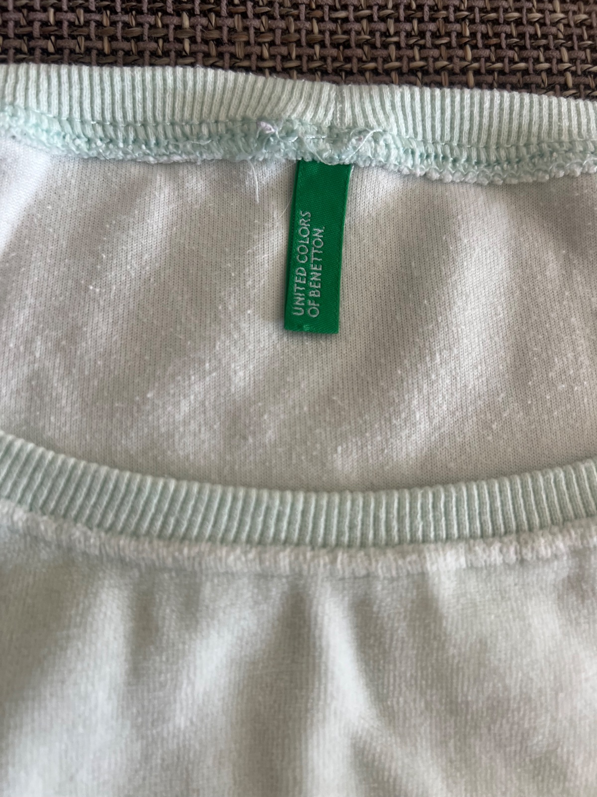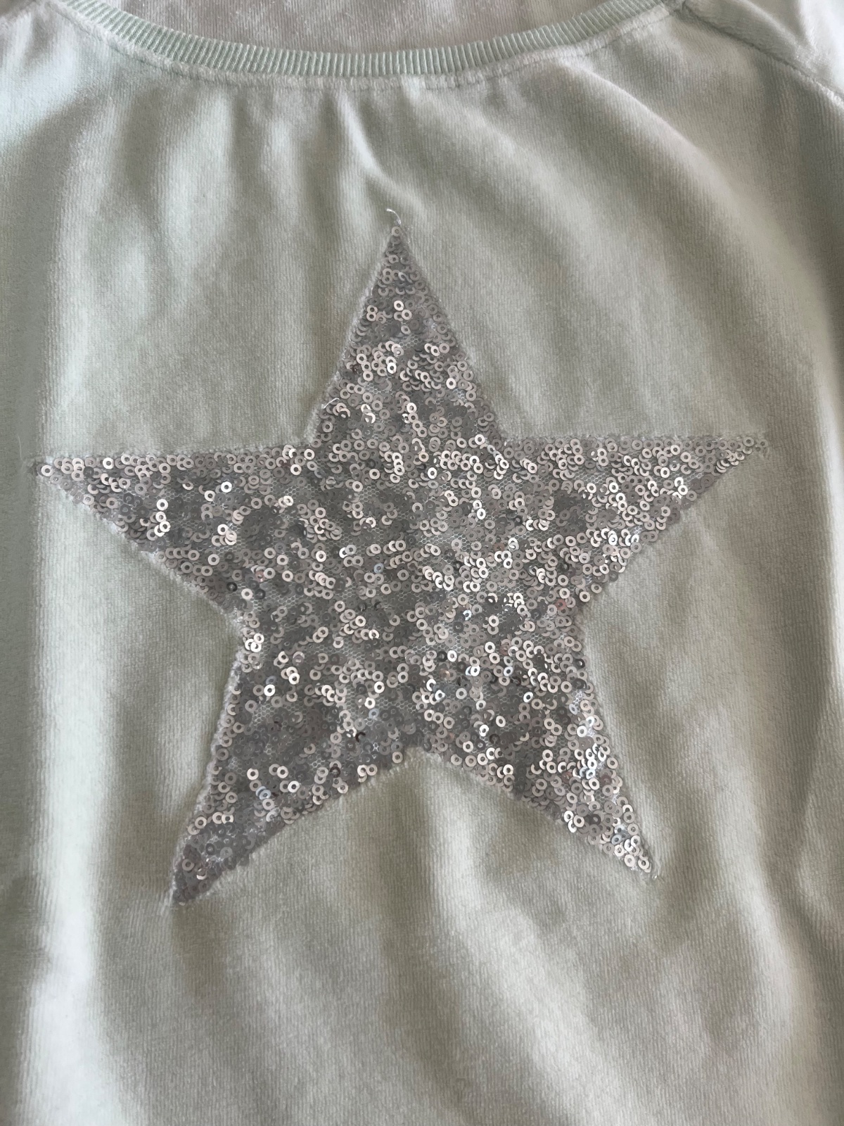 Predĺžená tunika zn. Benetton, je bledučko mentolovej farby, vpredu flitrová veľká strieborná hviezda.