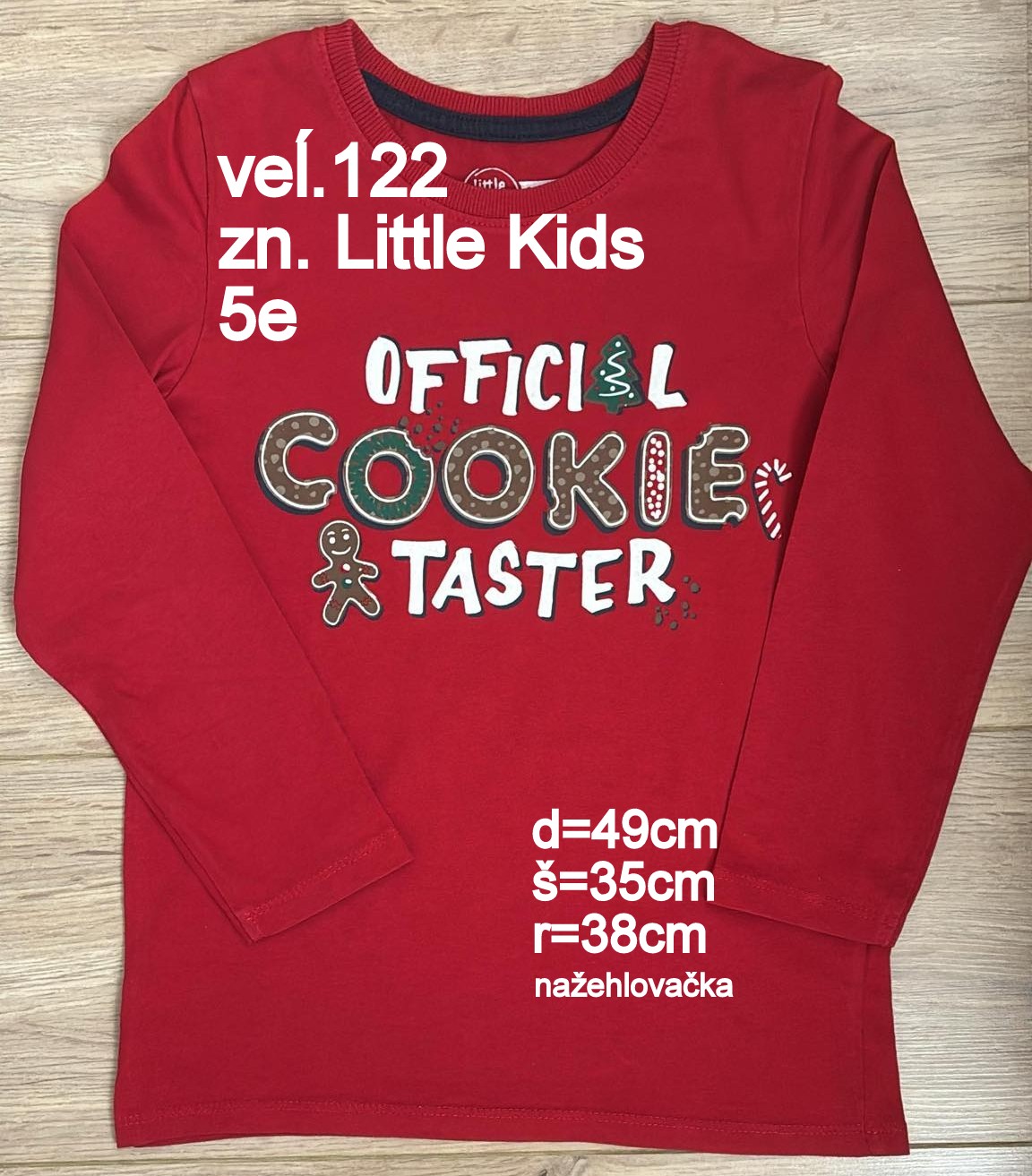 Predám chlapčenské tričká s dlhým rukávom, s vianočným motívom, veĺ.122, 6-7.r.,zn.Little Kids, modré: d=45cm, š=35cm, r=37cm, na prsiach nažehlovačka, top stav, červené: d=49cm, š=35cm, r=38cm, na prsiach nažýehlovačka, top stav, aj jednotlivo