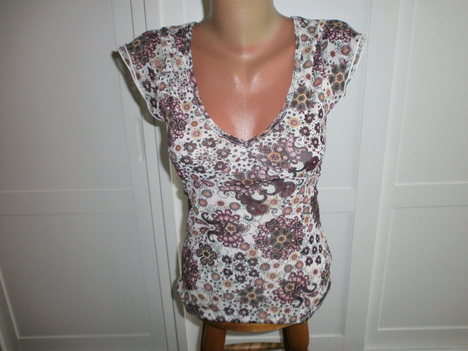 Predam znackove tricko je velmi pekne s hlbokym vystrihom,malo nosene,ako nove,sadne na postavu S,M velkost v UK je uvedena cislom 10 v D cislom 36,celkova dlzka je 58cm,obvod pod pazuchami 38cm,obvod v pase 34cm