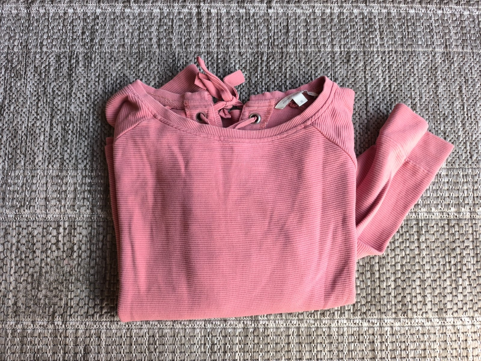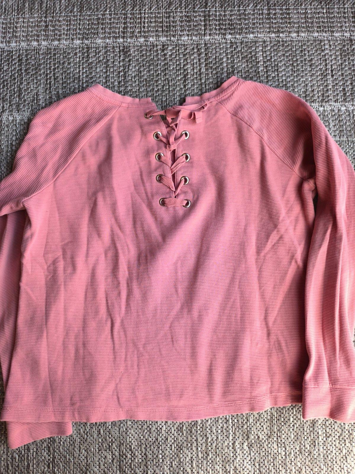 Bavlnený top s dlhým rukávom, vzadu je efektné šnurovanie. Vo veľmi dobrom stave. Veľkosť M. Dĺžka 54cm, šírka 51cm, rukáv od krku 64cm.