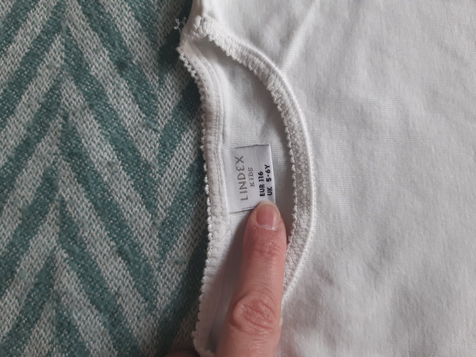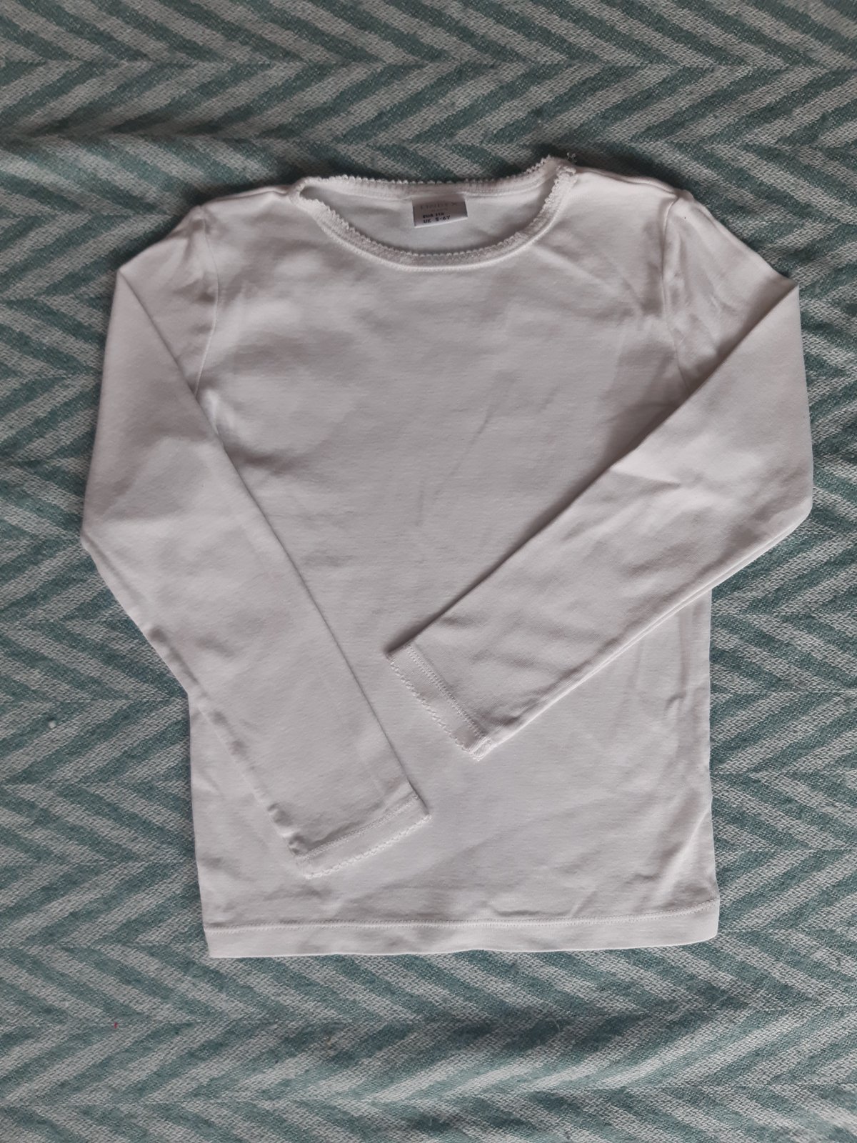 Čisto biele tričko, s jemným lemom okolo krku. Príjemný materiál, veľmi dobrý stav.