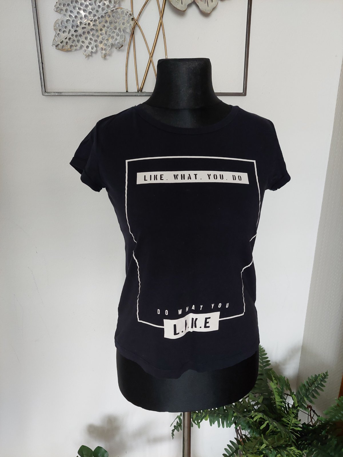 Predám nové nikdy nenosené veľmi pekné čierne tričko so zlatou potlačou, veľ.S (obtihnuté M), cena 5€+poštovné
