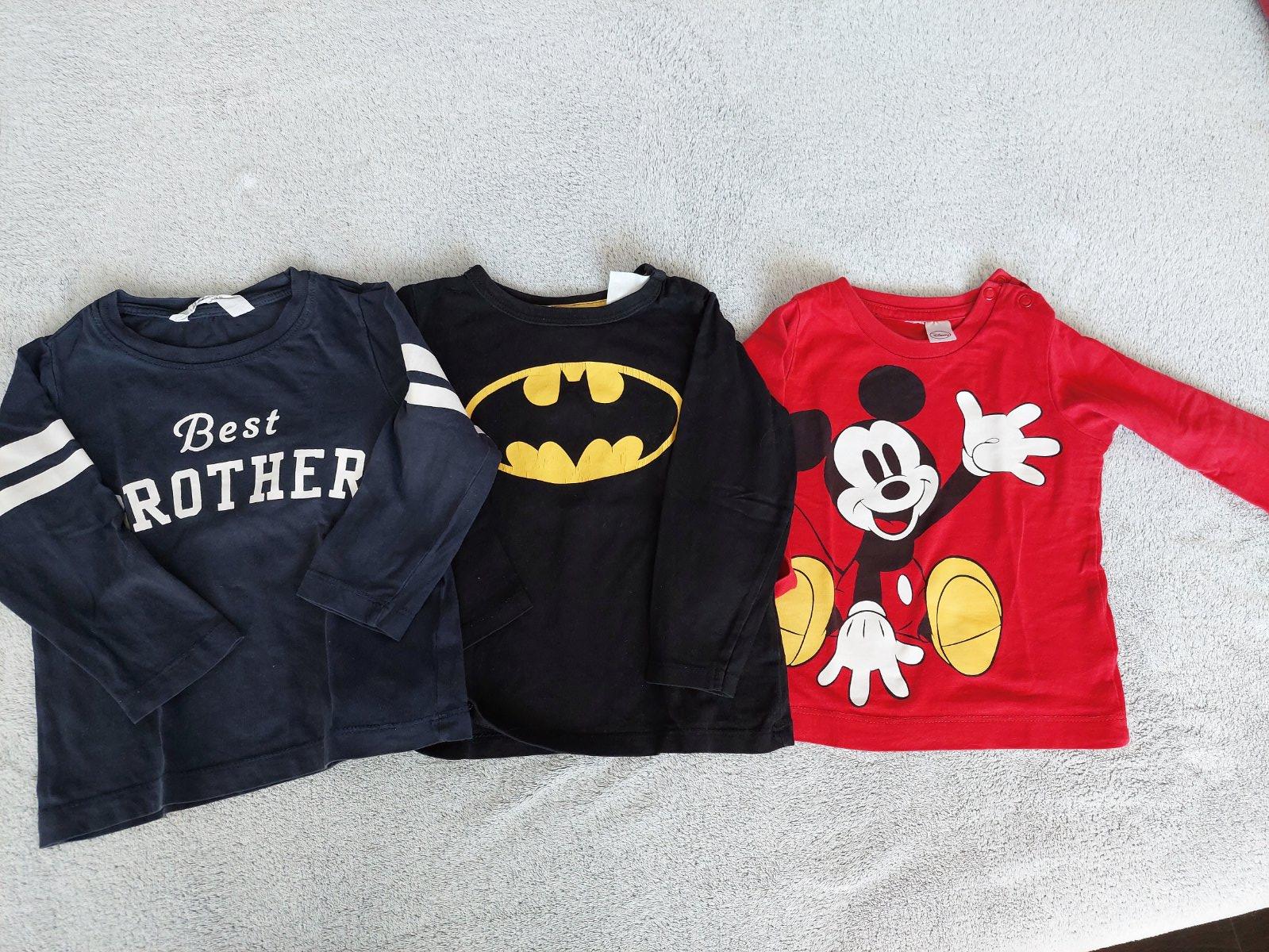Krásne bavlnené tričká s dlhým rukávom z H&M, veľkosť 86/92, Mickey a best brother bez chýb, Batman ma trošku puknuty obrázok,cena a predaj spolu