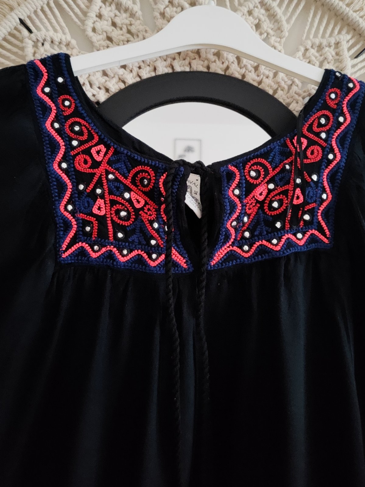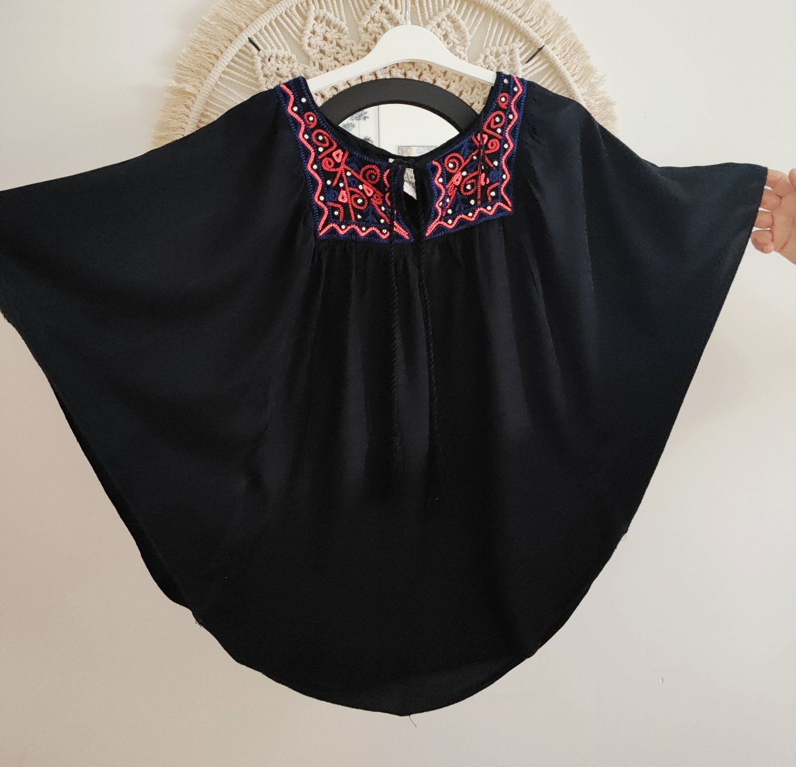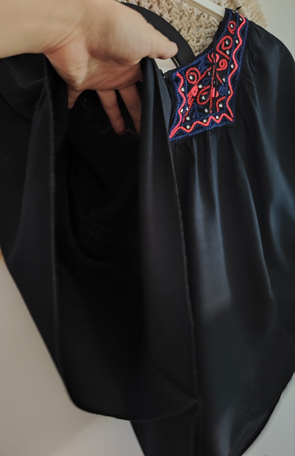 Bezchybné tenšie letné čierne tričko s 3/4 rukávmi. Po stranách a na prednom diele nariasené. Konce rukávov sú tiež nariasené. Nosila som ho chvíľu v tehotenstve, nakoľko sa dobre natiahlo. Čierna ...