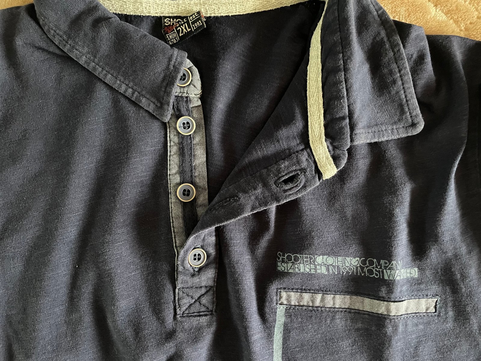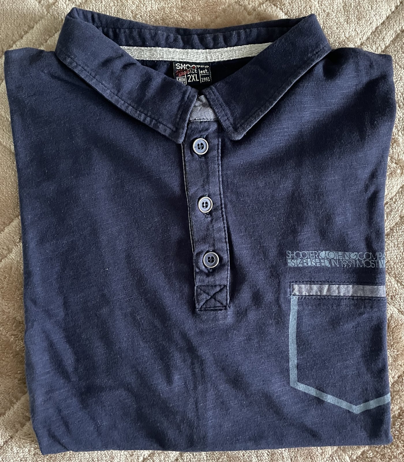 Pánska polokošeľa tmavomodrej farby. Značka Shooter. Veľkosť 2XL. Rozmery: 75 cm, šírka v podpazuší 2x55cm.