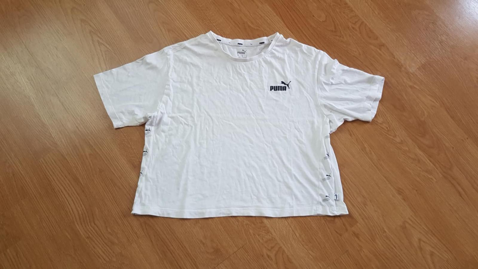 Veľmi dobrý stav, je to taký oversize strih, Na boku z oboch strán nápis a logo Puma, žiadne žmolky a pod., šírka popod paže je 57 x 2 cm, celková dĺžka meraná cez stred chrbta je 52 cm.