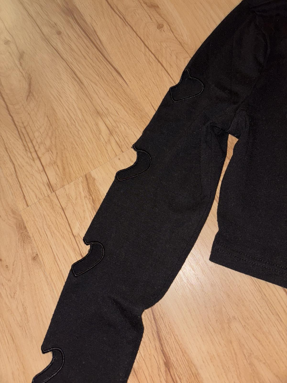 Výborný stav čierne, pružné, vyrezávané srdce veľkosť XS, š.pod pazuchami 39 cm, d. 39 cm