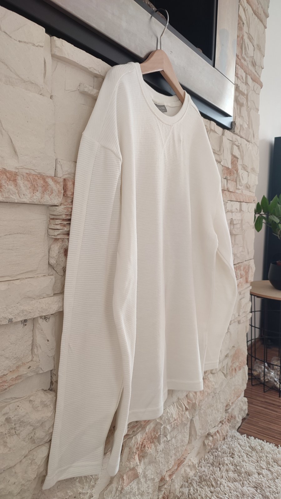Ponúkam smotanovo-biele rebrované tričko s nasivkou . Raz oblečene, rychlo sme vyrástli 😕.