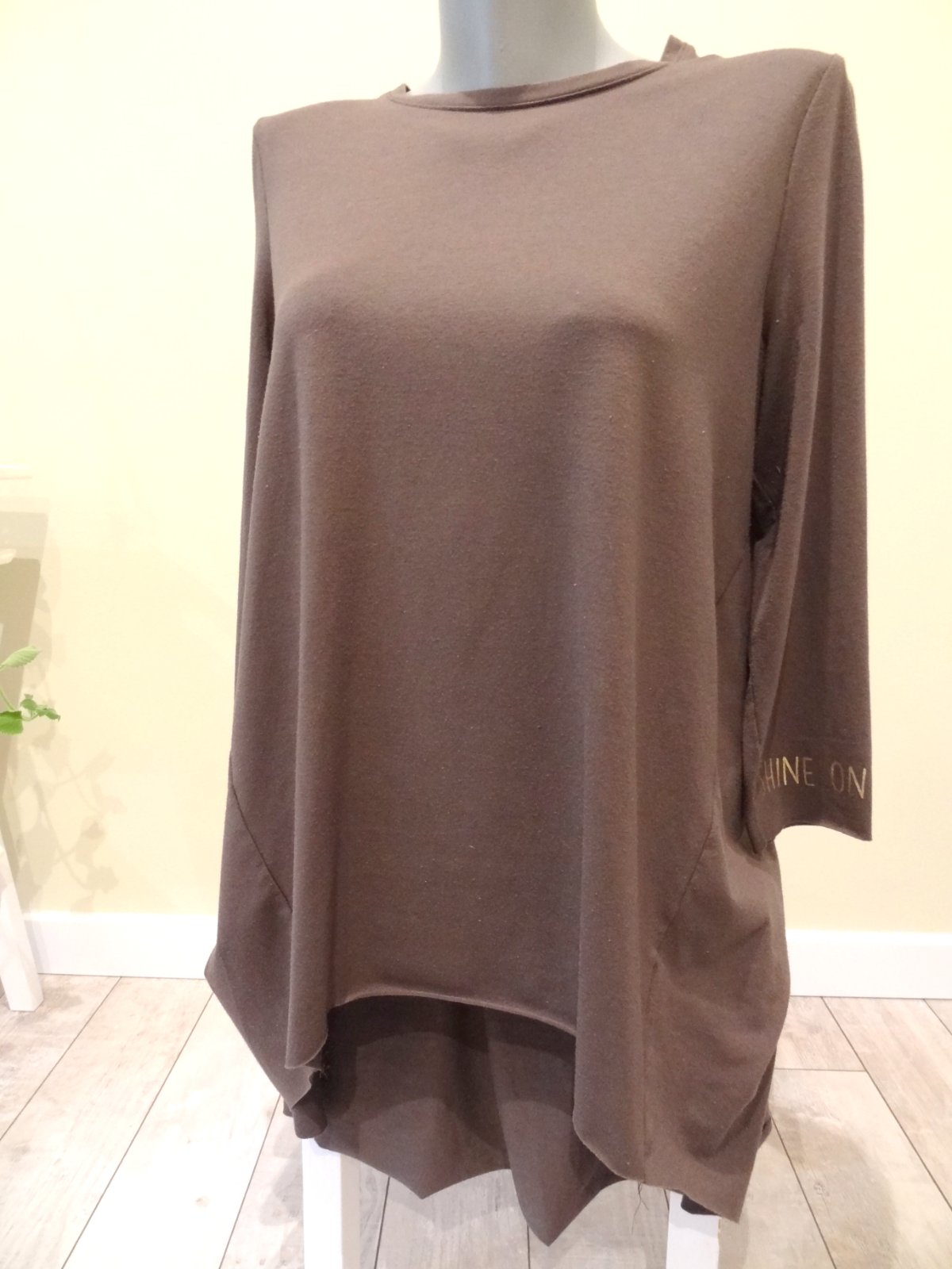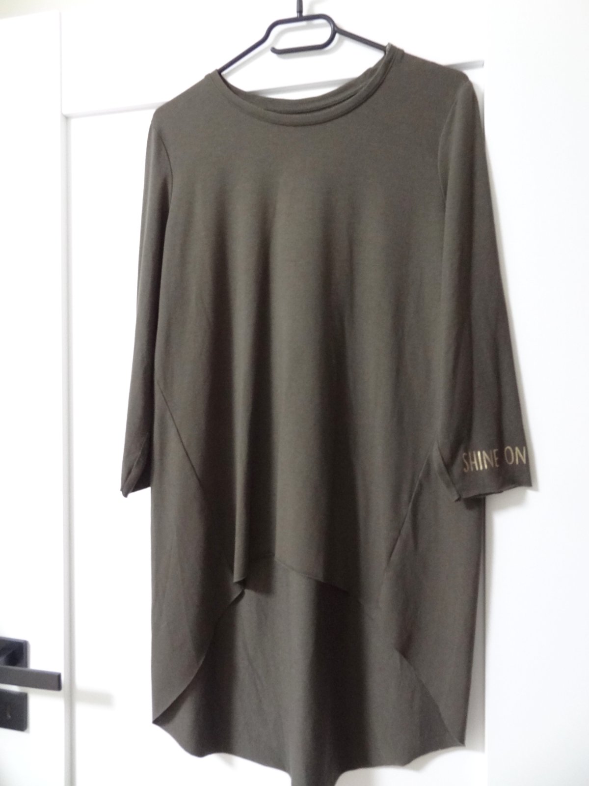 Dámska tunika/tričko v tmavo-olivovej farbe... vpredu kratšia... super sa hodí k legínam a úzkym nohaviciam...