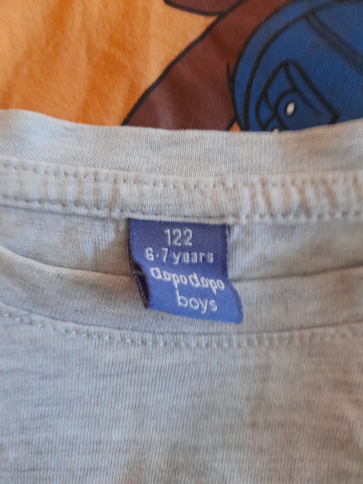 Tričko so 4 otáčacími obrázkami, obe sú na foto. Je bez dier alebo fľakov. Farba nie je ako nová, ale v pohode môže nosiť aj do škôlky. Sme nefajčiarska domácnosť bez zvierat. Velkostne sedí na 122...