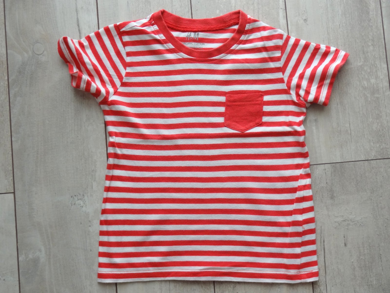 Pruhované tričko červené H&M, s mini vreckom vpredu, v zachovalom stave, veľ. 86 (12-18 mesiacov)