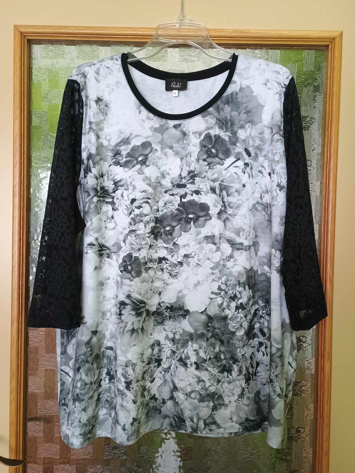 Elegantny top vo velkosti 52, na ramenach su aj vypchavky