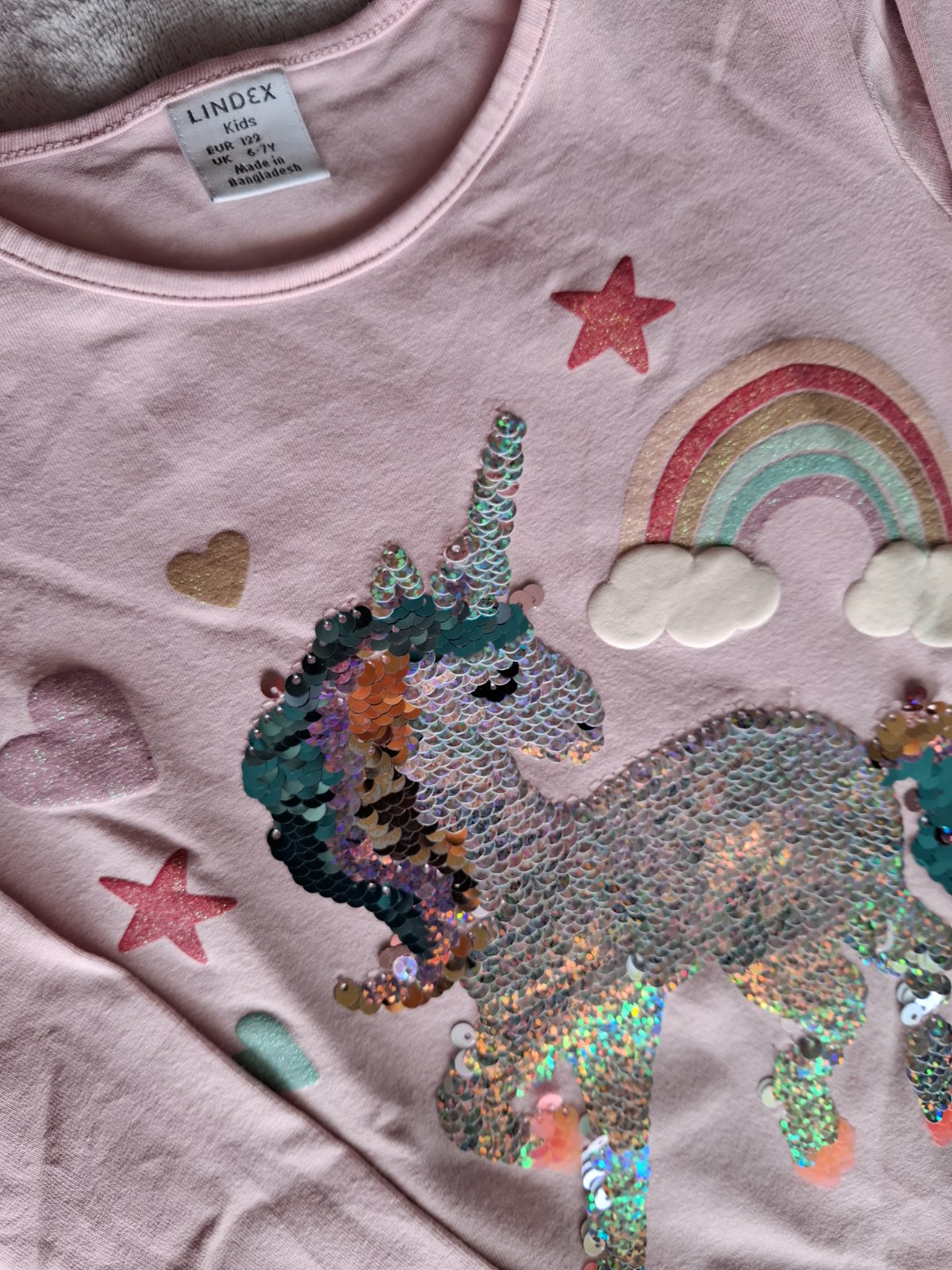 Krásne kúsky, tričko s premieňacím jednorožcom, uvedenia veľkosť 122,ale lepšie sadne na 116