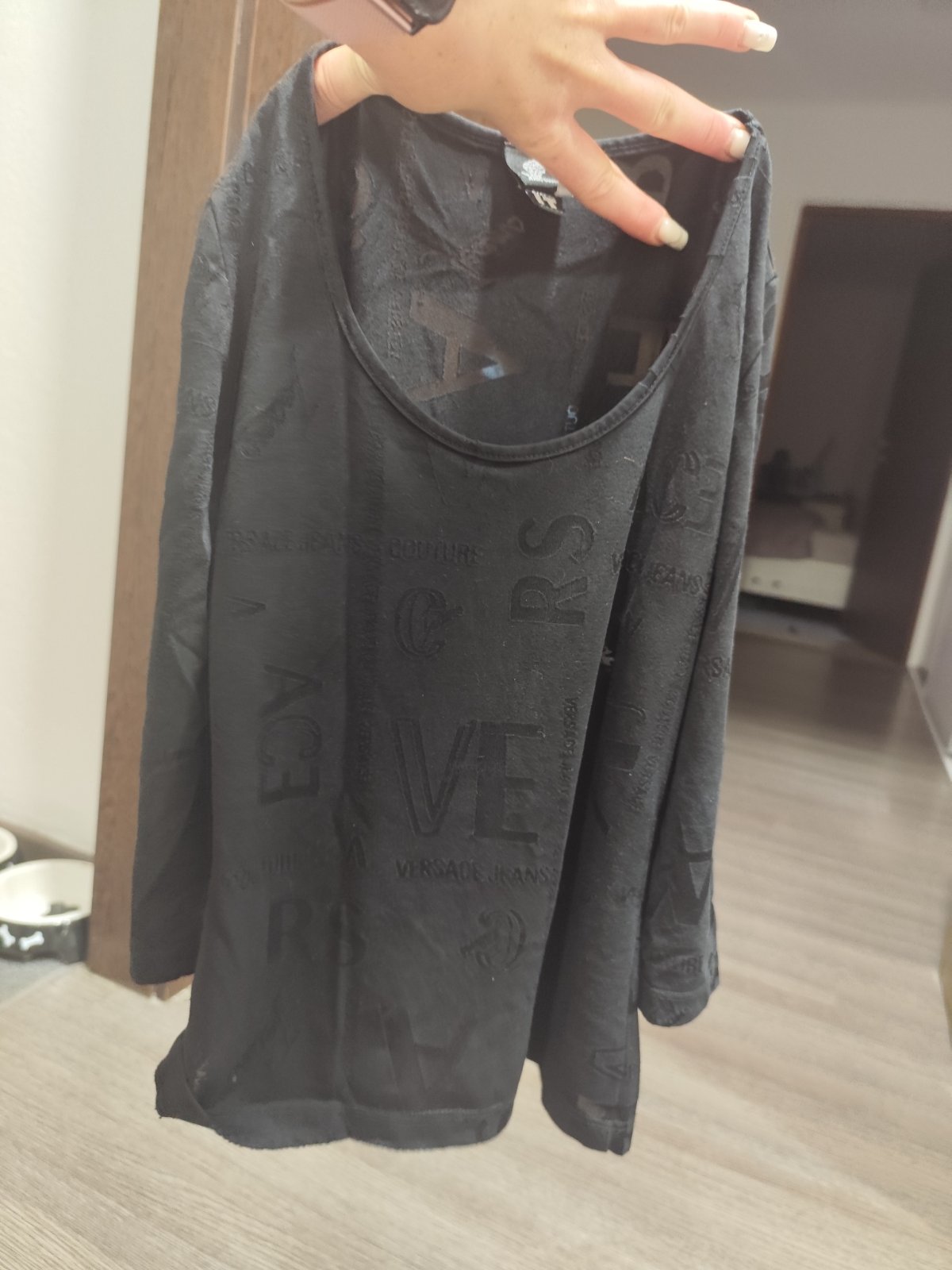 Skoro ani nenosené. Je veľmi pekné, na poslednej fotke vidno že je akoby priesvitné a potlačené nápisom Versace. Je dosť tesné, neelastické.