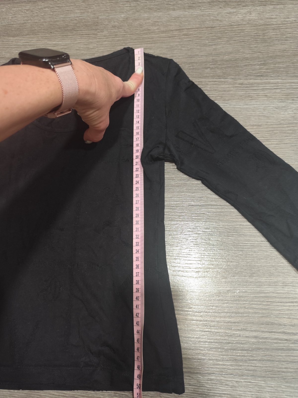 Tričko raz oblečené, vpredu mini dierka (viď 2. foto) ja som si ju všimla až pri fotení. Tričko je over size, rukávy sú 3/4, ale mne hrozne úzke, preto posúvam ďalej. Dĺžka 51 cm, cez prsia 104 cm,...