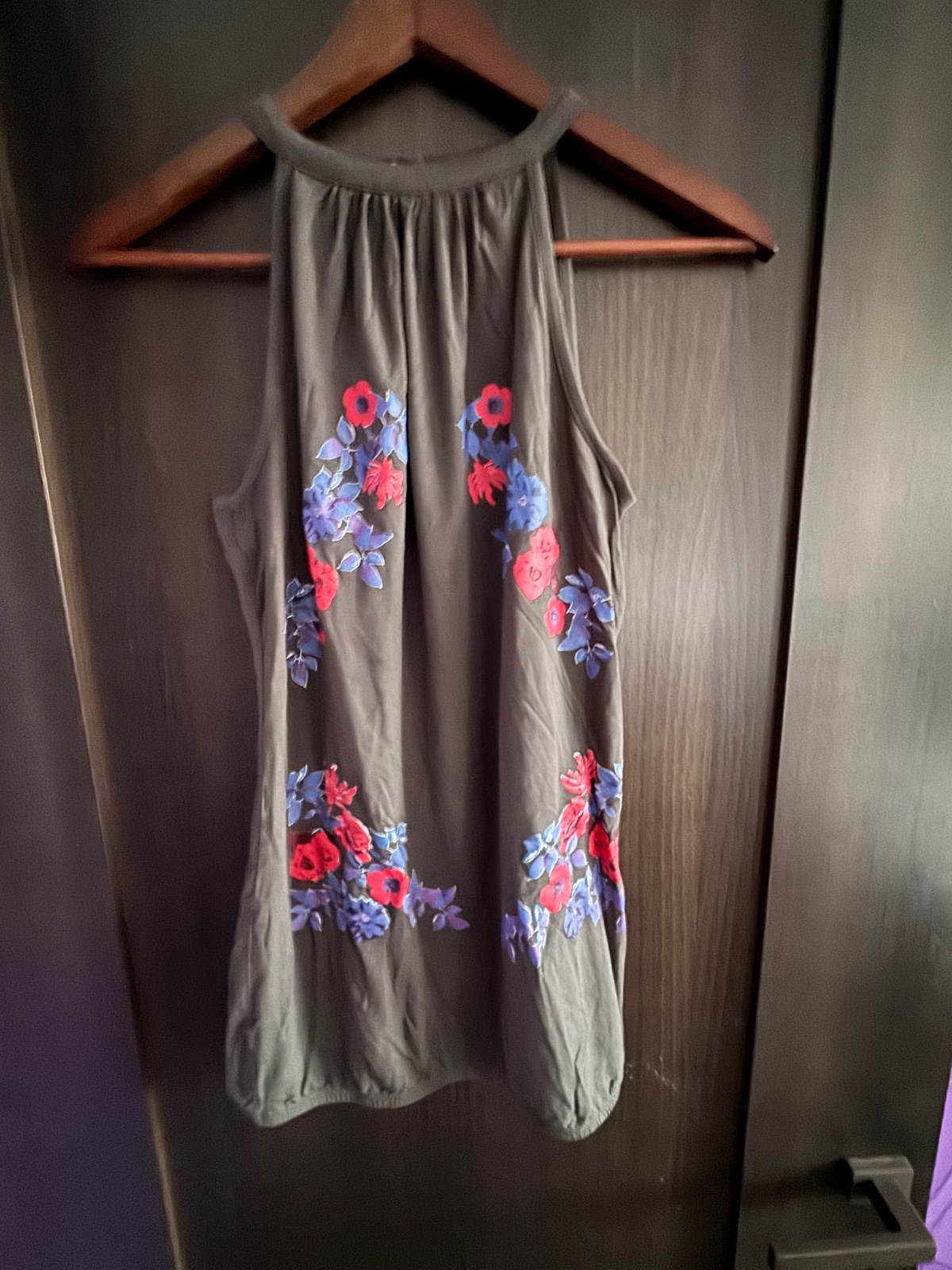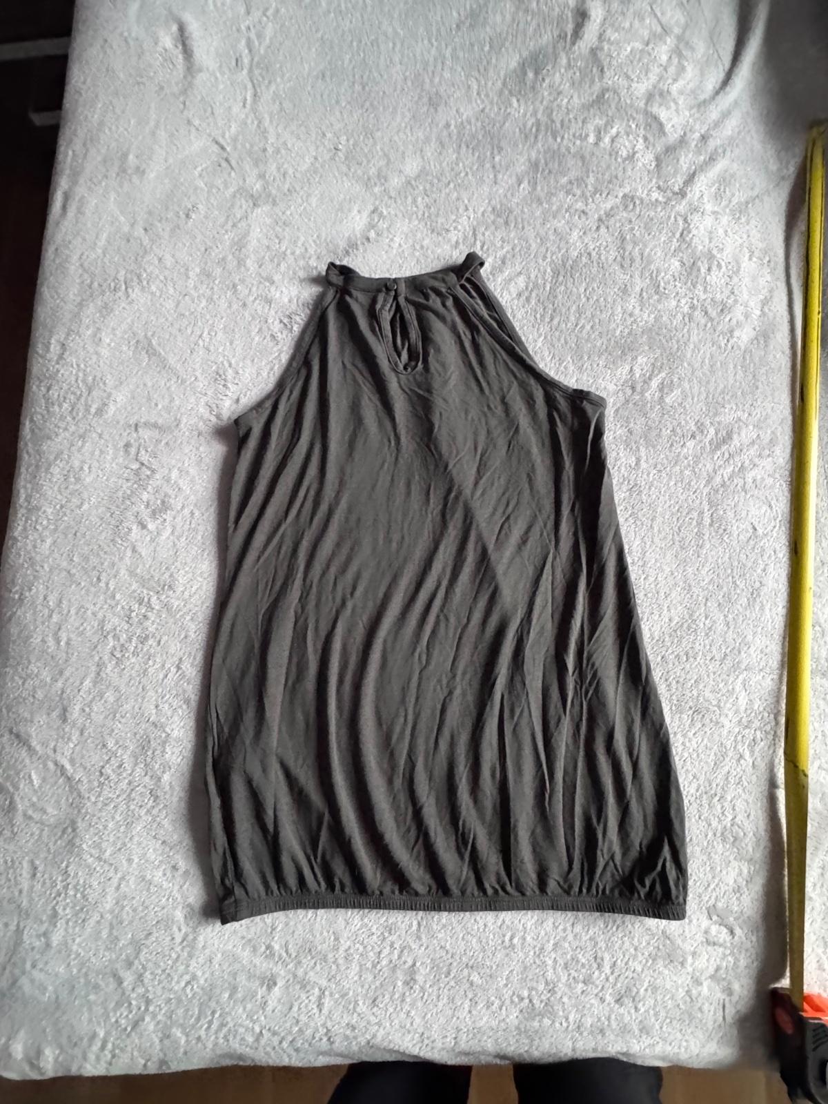 Velkost uvedena vyrobcom na stitku 32/34-XS, sedí, ak dáma preferuje nie príliš obtiahnuty.. Viac na telo sedí skôr ako S miery: dlzka 64,5cm, sirka (merane na chrbáte pod pazuchami v kludovom nena...