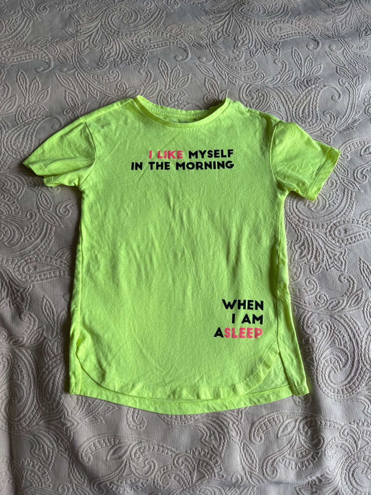 Tricko vo veľmi dobrom stave. Vzadu predĺžený strih. Uvedená veľkosť 122, podľa mna už od 116.