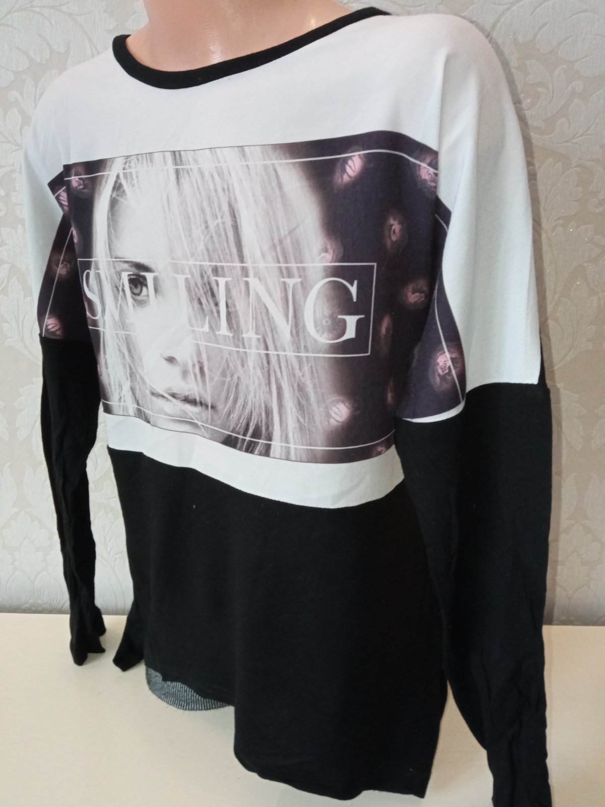 Dievčenské tričko s dlhým rukávom. Vpredu ako blúzka, vzadu ako tričkovina. Elastické.