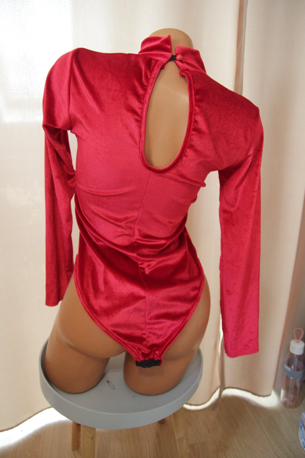 Červený zamatový body top, M