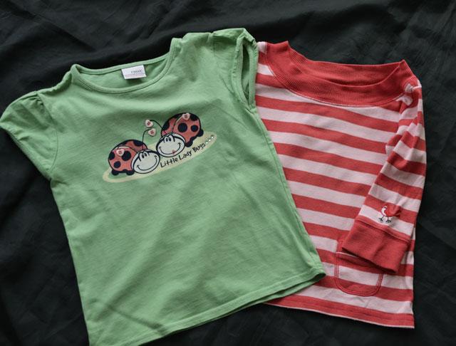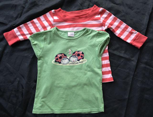 Ružové prúžkované D 40,5 cm, Š pod pazuchou 32,5 cm, rukáv od krku 33,5 cm zelené D 42 cm, Š pod pazuchou 33, 5cm