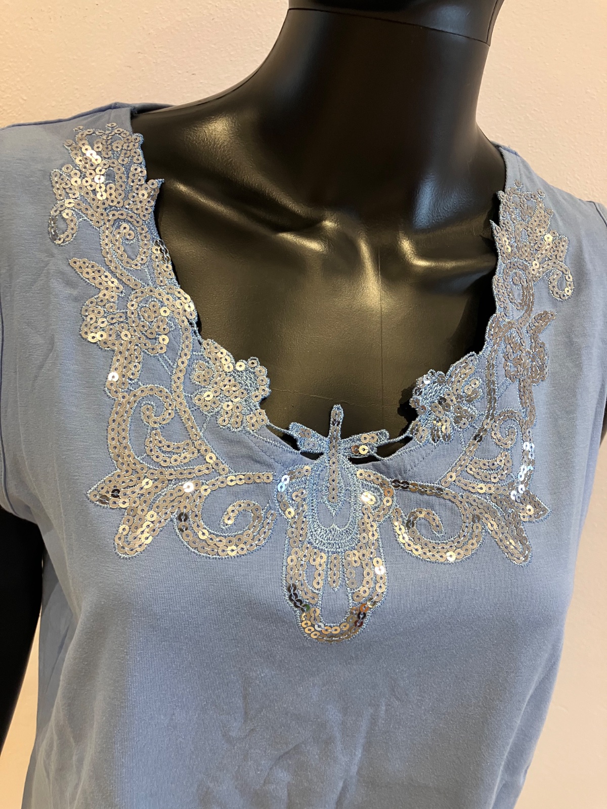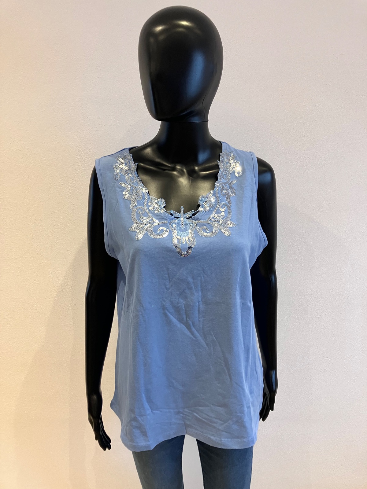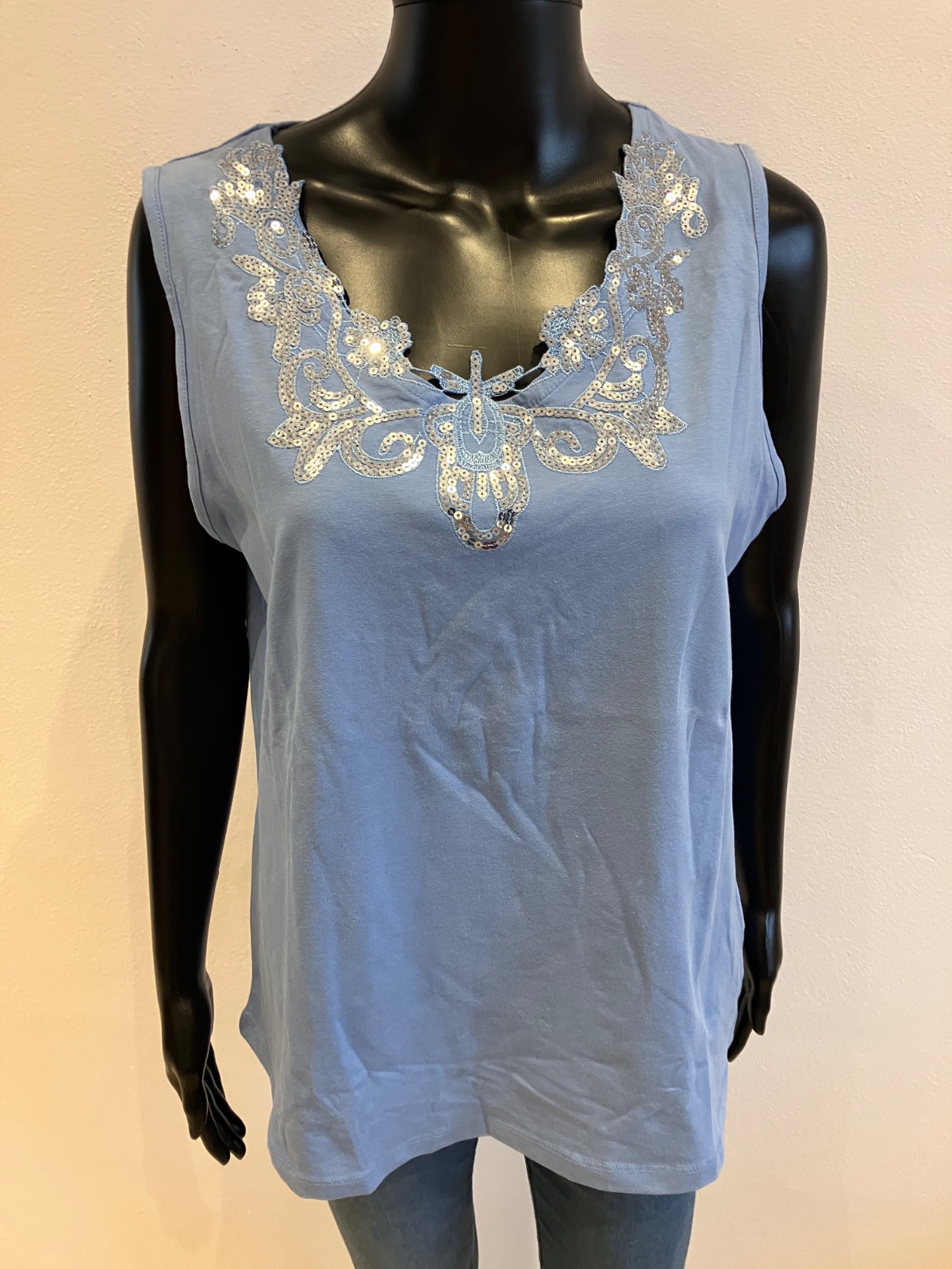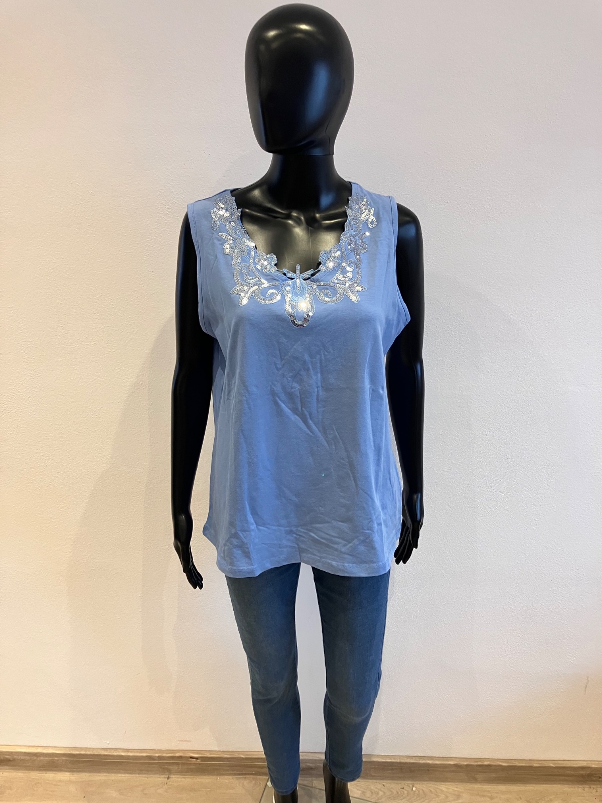 Dámske tričko bez rukávov s flitrami, okrúhly výstrih, elastické, materiál 95%bavlna,5% elastan.