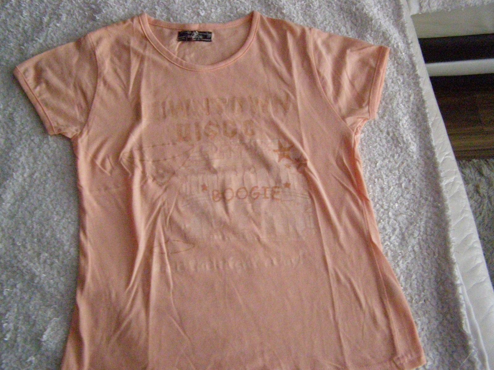 Krásne bledo oranžové tričko ku krku, len vyskúšané. Šírka 45 cm, dlžka 48 cm.
