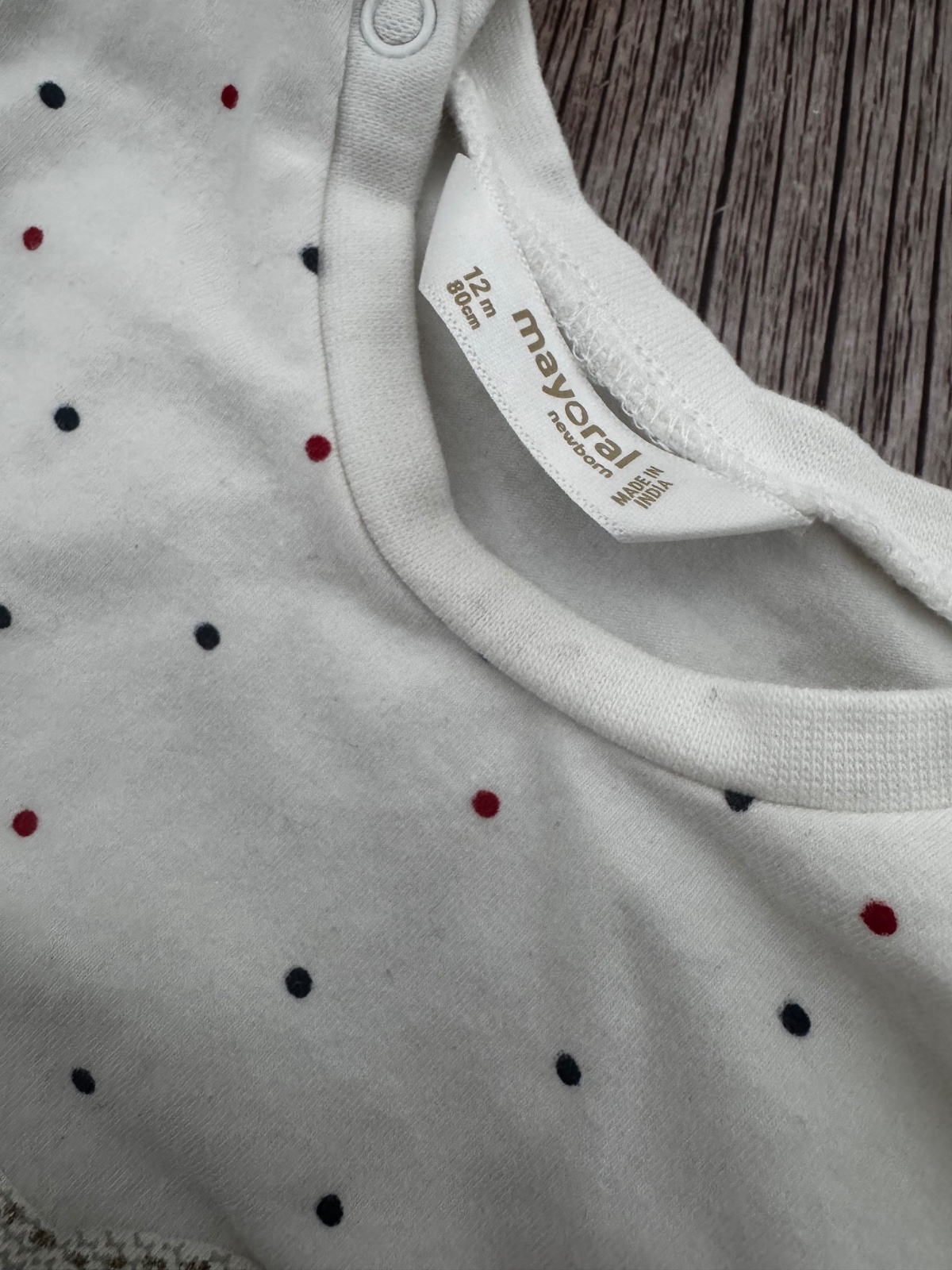 Krásne letné tričko zn. Mayoral, veľkosť 80, ale je väčšie, len 1x oblečené, ako nové. Mám k nemu aj krátke nohavice /viď ďalšie moje inzeráty/