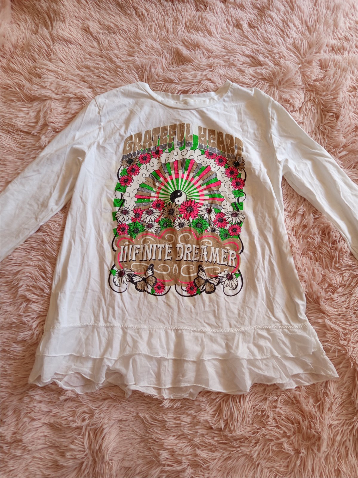 Predám pekné biele tričko s volamni na spodu s obrazkom