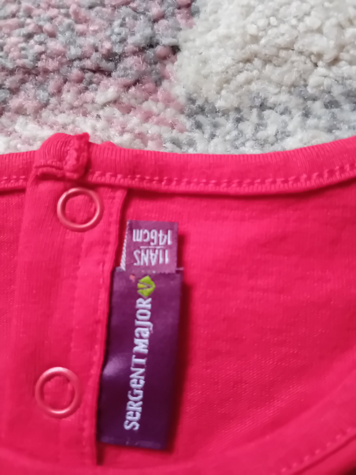 Predám dievčenské tričko, veĺ.1456, zn. Sergent Major, d=50cm, š=40cm, materiál krep, na pleci mašĺa, volánikový rukáv, zapínanie vzadu na krku na 3 cvočky, 3D aplikácia, top stav