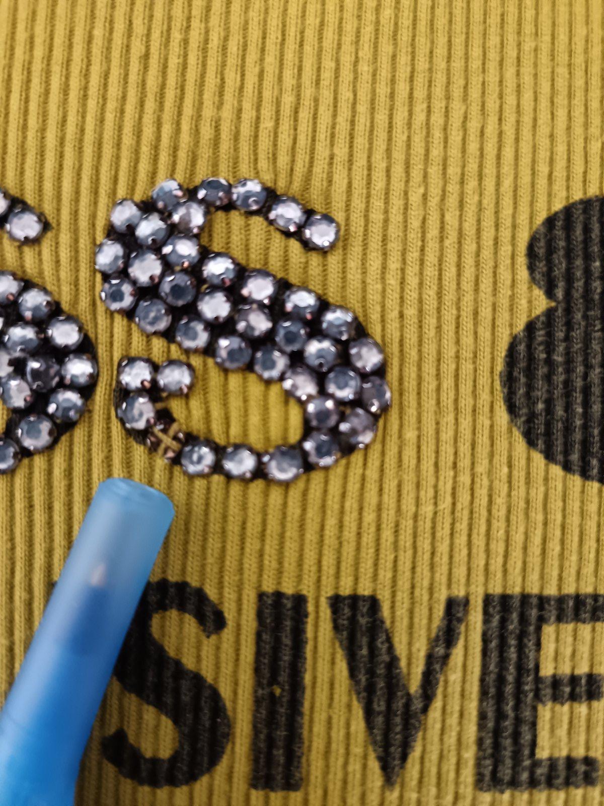 Pohodlné, pružné tričko zo 100% bavlny, veľkosť uvedená M - médium, odporúčam pre XS-S alebo 158 cm, super stav, chýba jeden kamienok / viď foto /.