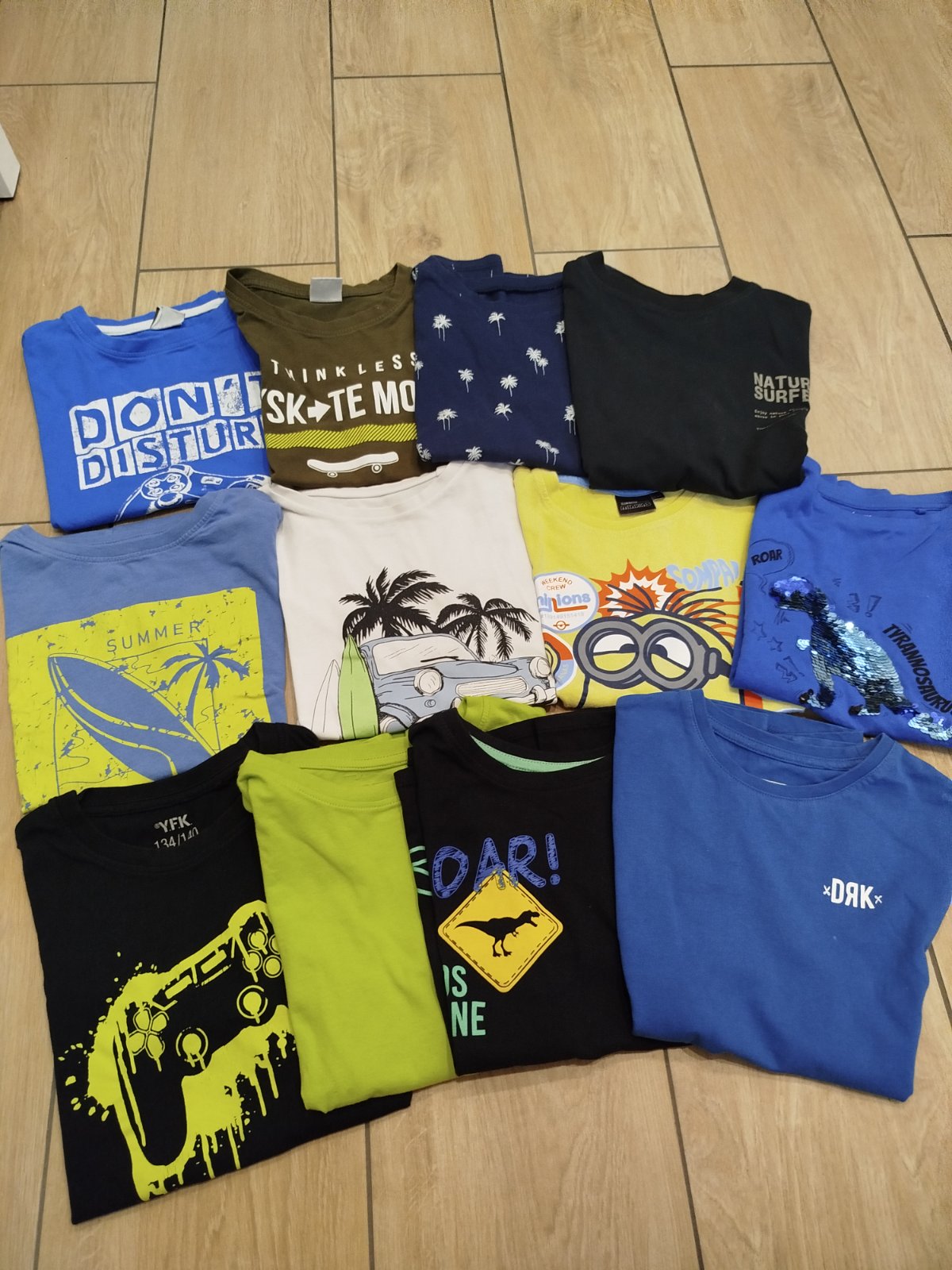 12 ks krátkych tričiek, veľkosť 134/140. Značky: Zara, DRK, Kik, H&M, Sinsay.
