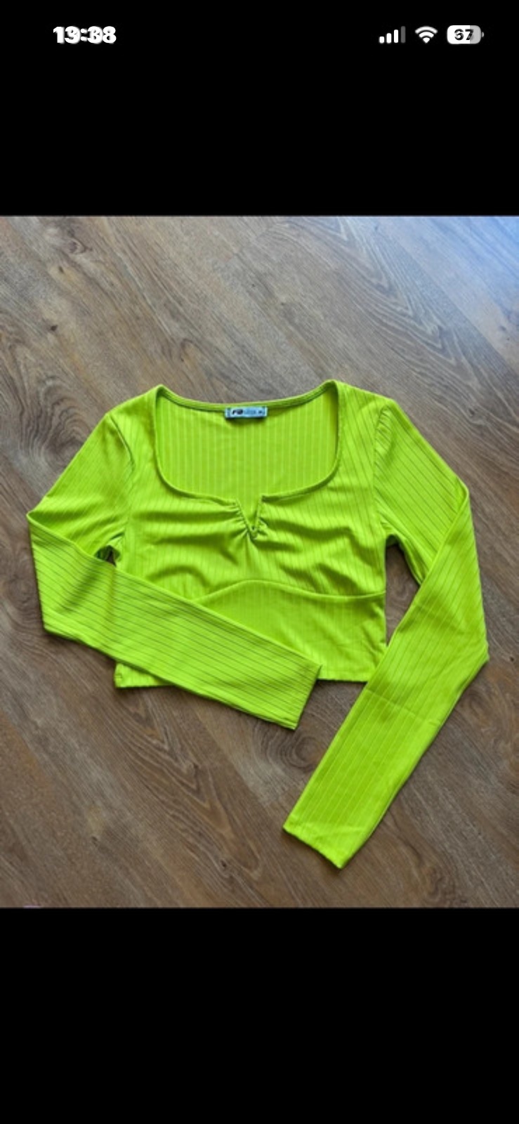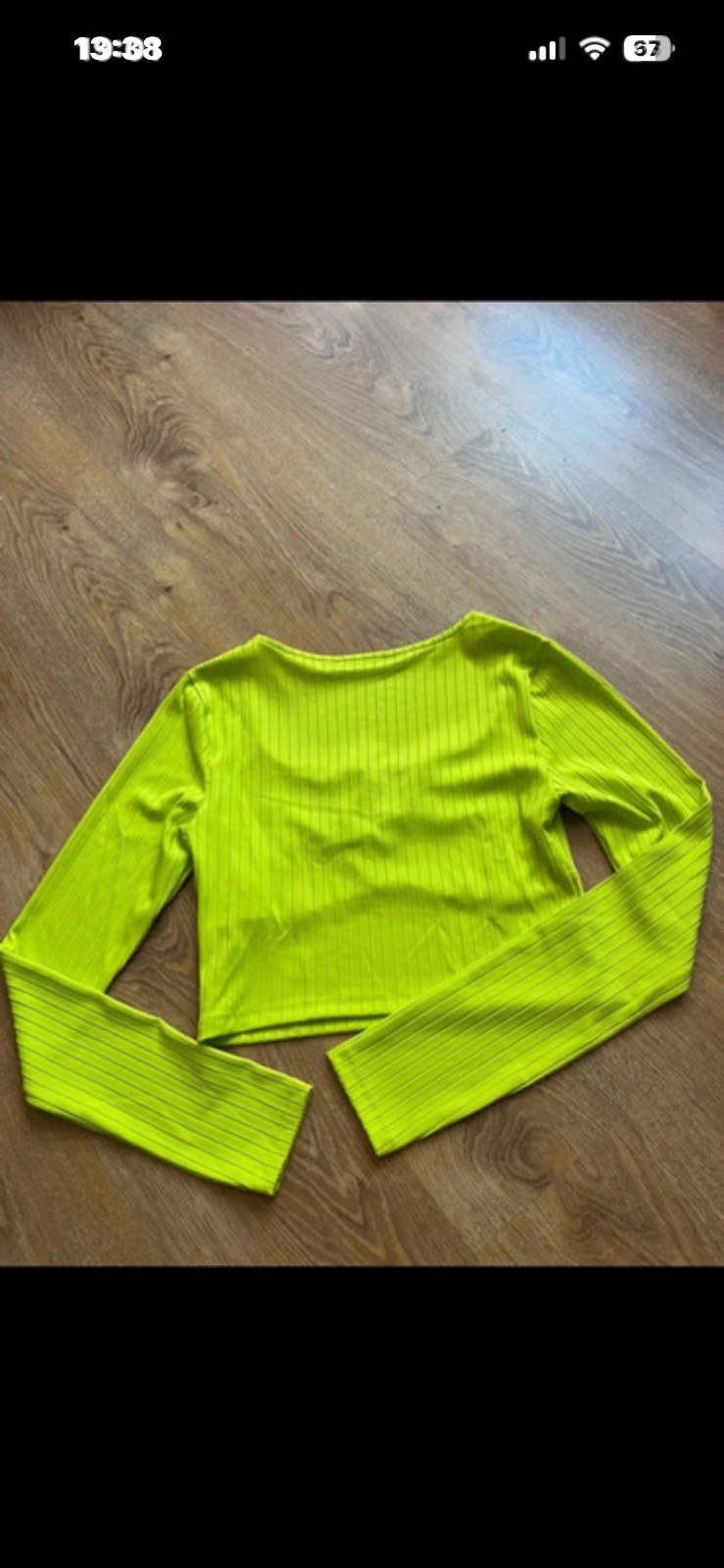 Predám pekné tričko s holým chrbtom a drevenými korálkam na viazaní.Tričko je nenosené.Šírka pod pazuchami v kľude je 42cm x2, dľžka je 62cm.