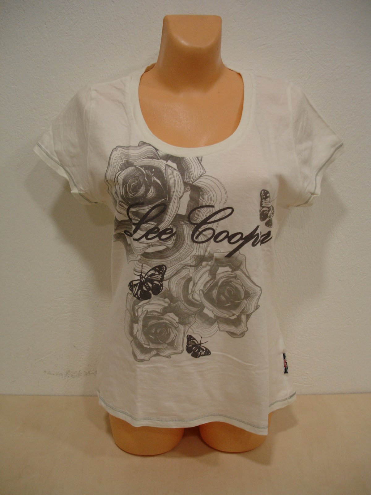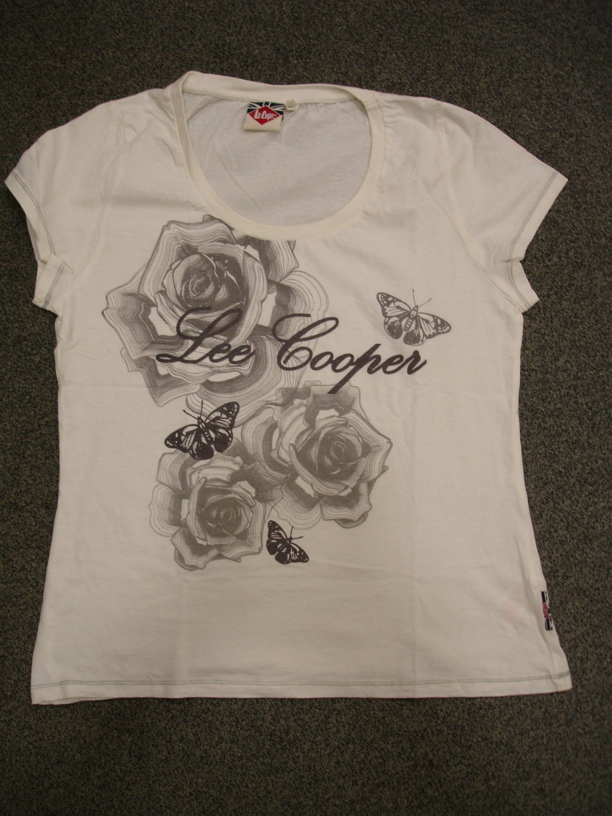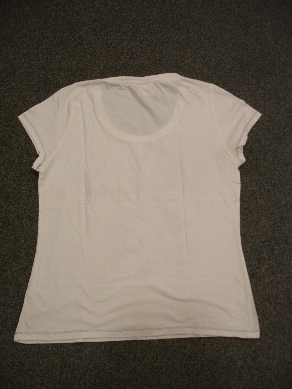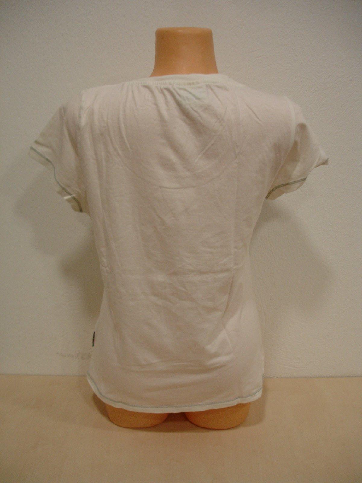 Nenosené , bez poškodenia. Zloženie je 100% bavlna. Materiál je veľmi príjemní na dotyk. Rozmery sú šírka cez prsia 49cm x 2 , dlžka je 63 cm a dlžka rukáva je 15 cm. Všetko je merané v nenatiahnutom stave, Je tam ešte vôľa.