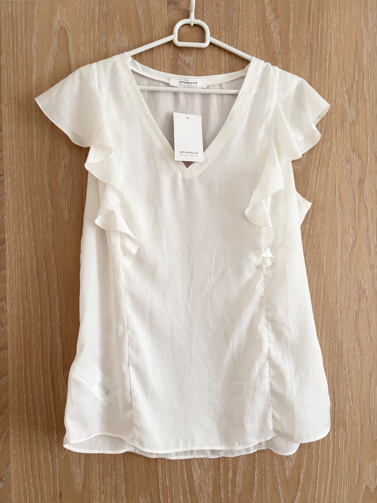 Nove tricko vel. 40 znacky Promod. Na rukavoch volaniky.