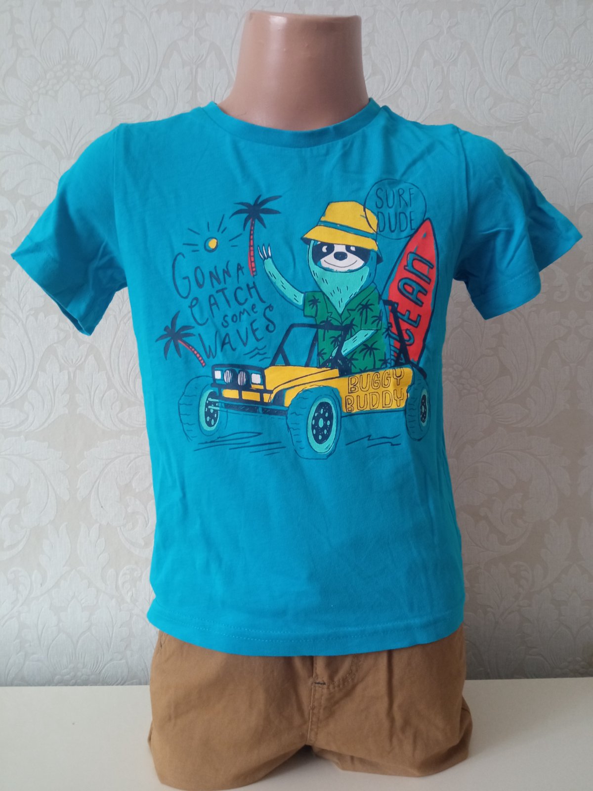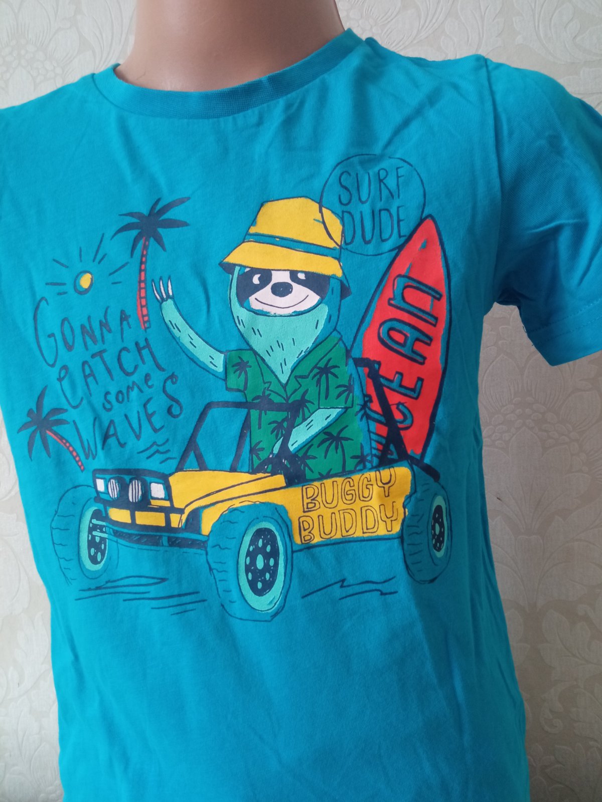 Chlapčenské tričko s krátkym rukávom, potlač, okrúhly výstrih, elastické. Veľkosť cca 110.