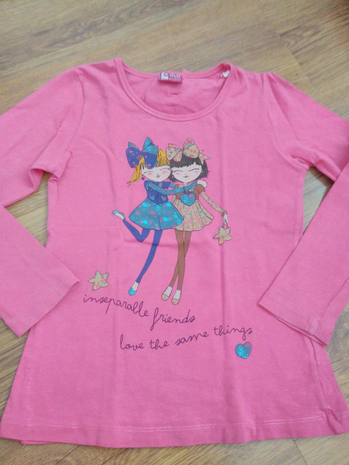 2 ks tričiek s dlhým rukávom zn. OVS v. 116. Tričko bez potlače je výraznej ružovej farby, hore je ozdobný lem. Top 100 % stav, minimálne nosené. Tričko s koníkmi je na štýl tenučkej mikinky, na ňo...