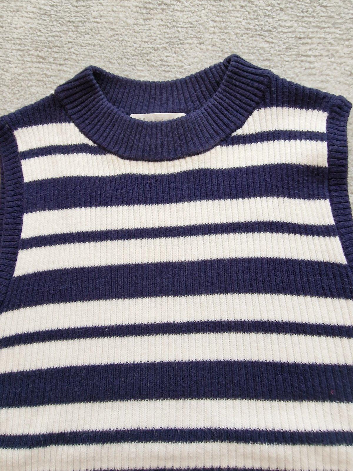 Jeden nádherný top na leto. Veľkosť písaná 134-140, ale neklamem, dcéra ho nosila ešte ako crop top do 164. Je akoby charakteru svetríka. Sedí ku čomukoľvek, k bielym legínam, riflovým kraťasom, no proste fantázii sa medze nekladú. Nenatiahne sa, drží si farbu a tvar. Proste je nám ľúto, že sme vyrástli....