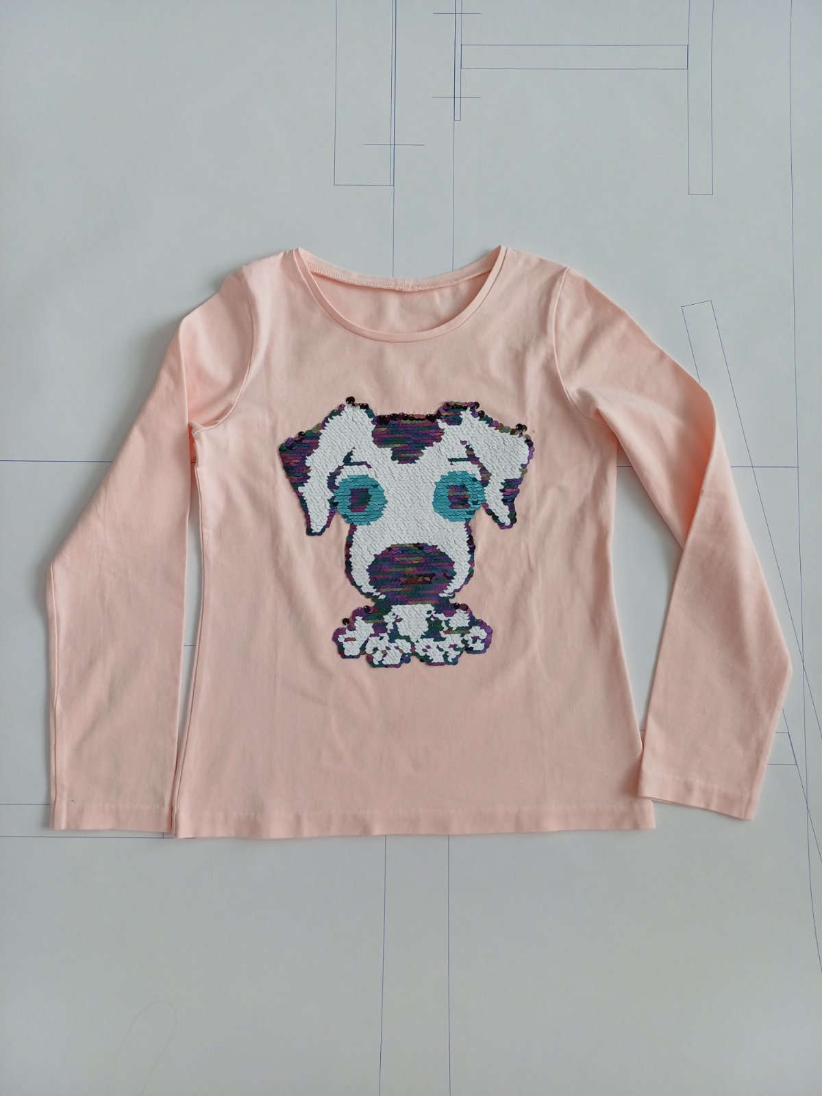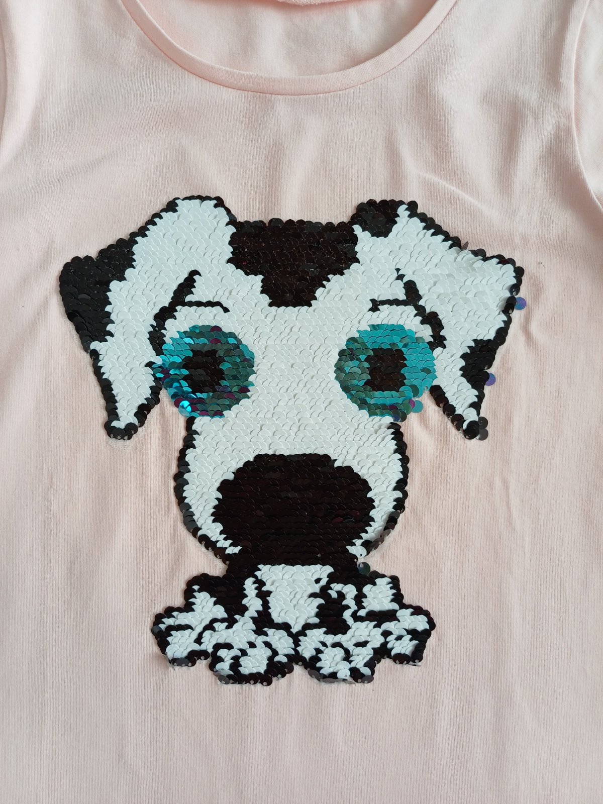 Predám tričko vo veľkosti 134/140 s pretáčacími flitrami. Výborný stav bez fľakov a bez dier. Oblečené dvakrát.