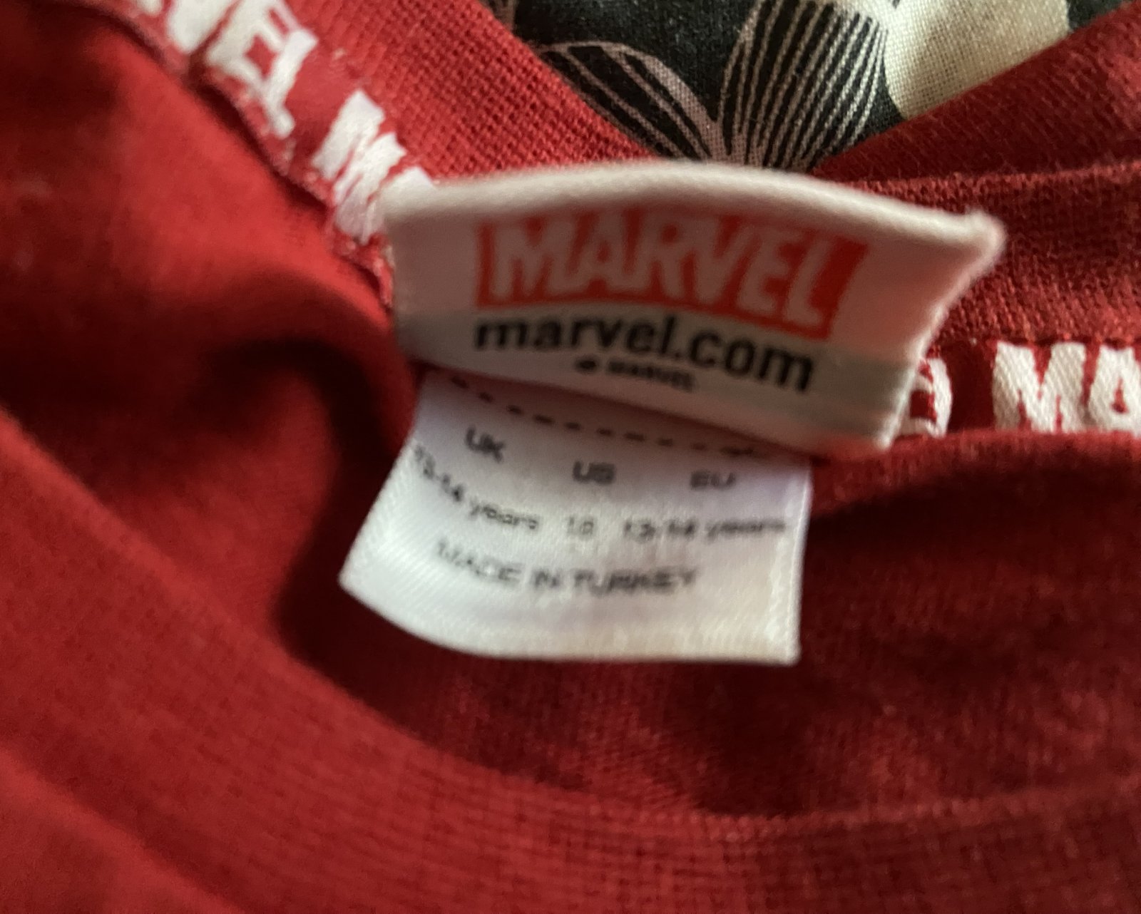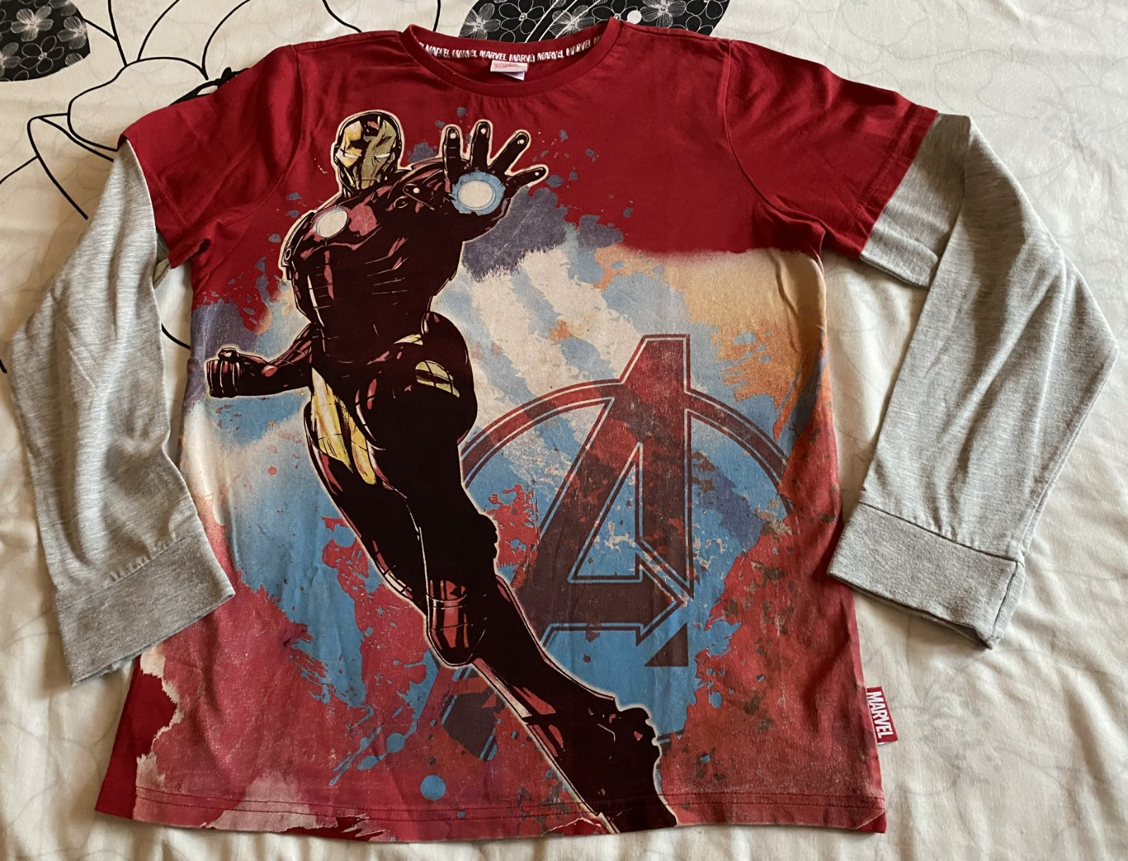 Tričko MARVEL - SPIDERMAN v. 164 na 13-14r., materiál 60% bavlna, 40% polyester, pekné nevypraté farby, málo nosené - na striedačku s inými. Miery: dĺžka od krku dolu: 61cm, šírka: 45cmx2, rukáv od ramena: 59cm + 10cm plece vrátane lemu okolo krku.