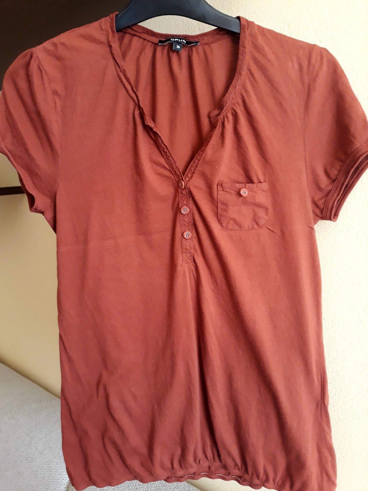 Pohodlné tričko zo 100% bavlny, veľkosť zodpovedá 36/S. Spodný okraj zapracovaný do gumičky.