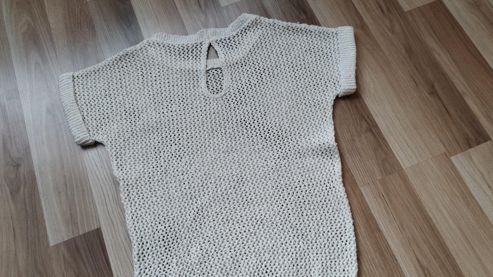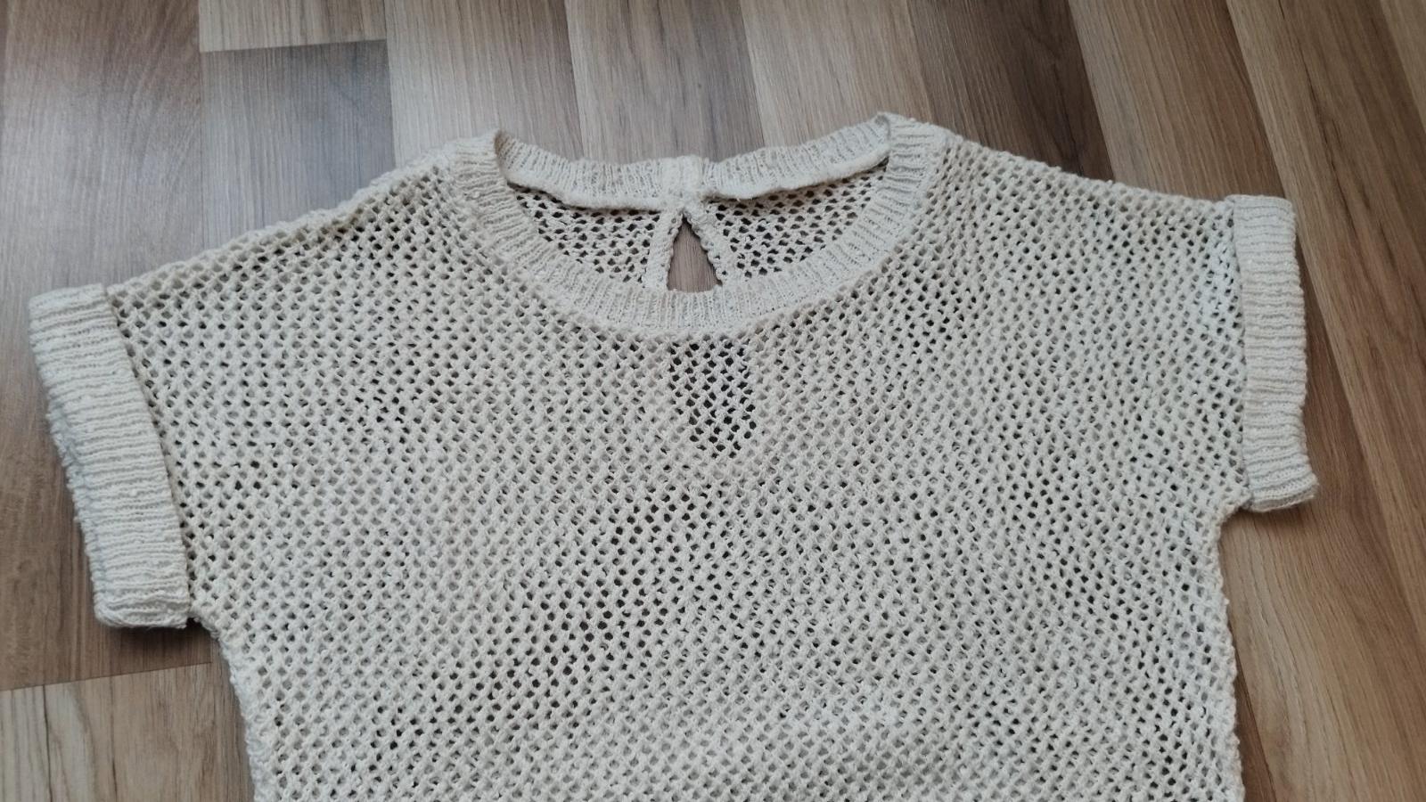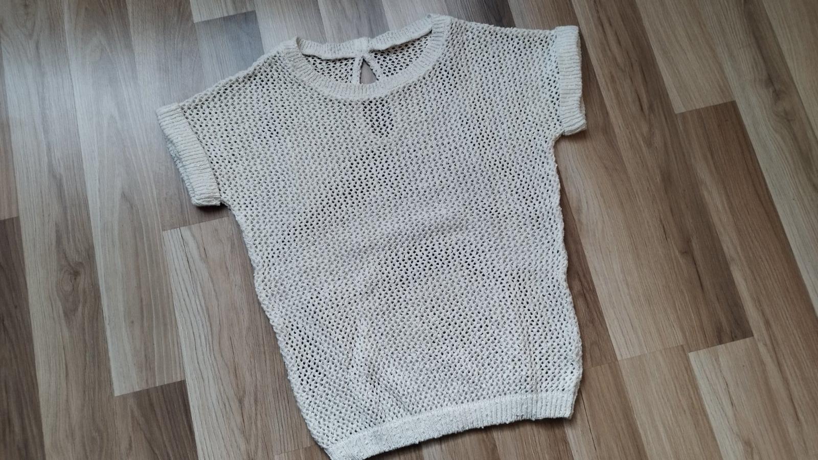 Dierkovany pulóver s krátkym rukávom párkrat noseny, ľahký a jemný, veľkosť S-M, bavlna