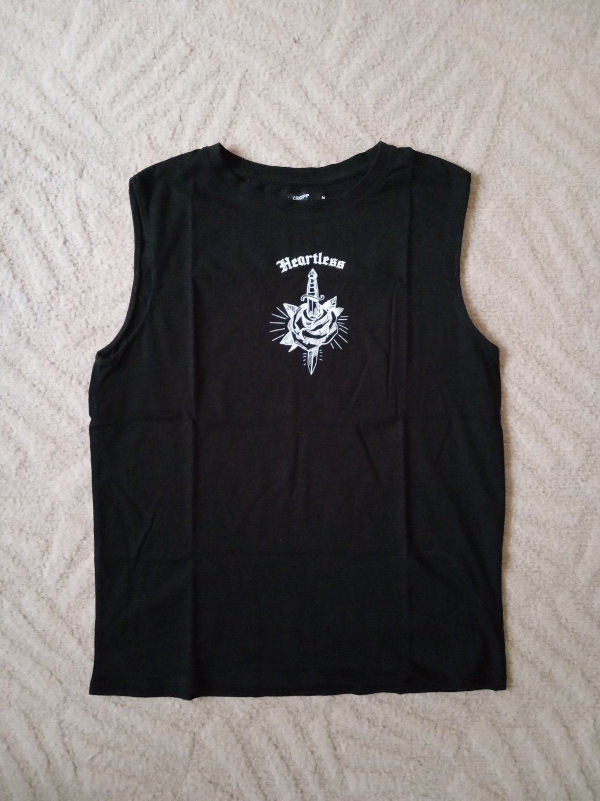 nosené, bez poškodení, pôvodne boli aj rukávy ale prešila som to, pohodlné, sedí na M, značka Cropp