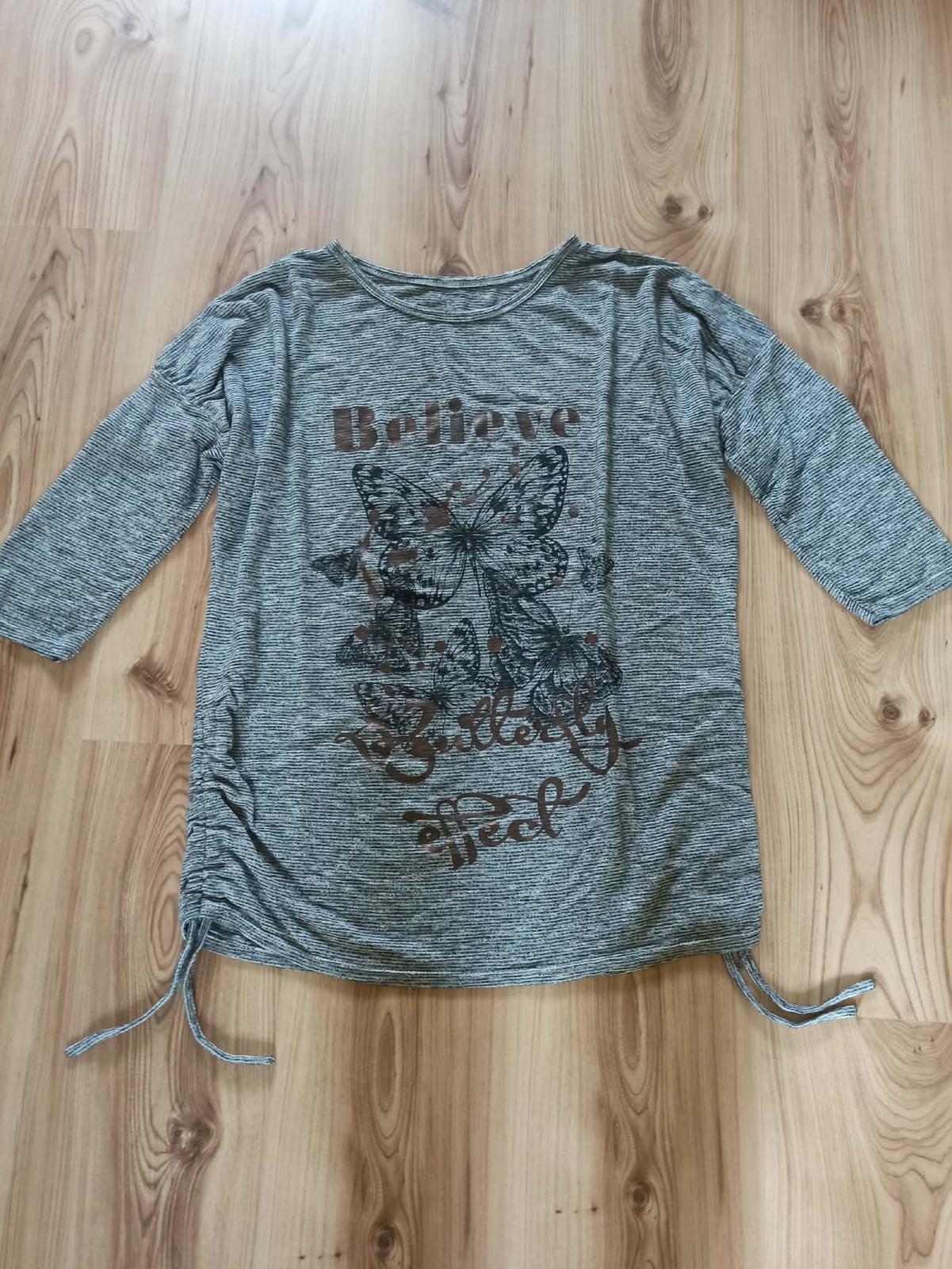 Je to málo nosené elastické tričko z trištvrtovým rukávom.Po bokoch má putka,môže sa nosiť z nejakým opaskom.Má padavý výstrih.dlžka 66cm,širka v podpazuší 60x2cm,všetko merané v klude,ešte sa podd...